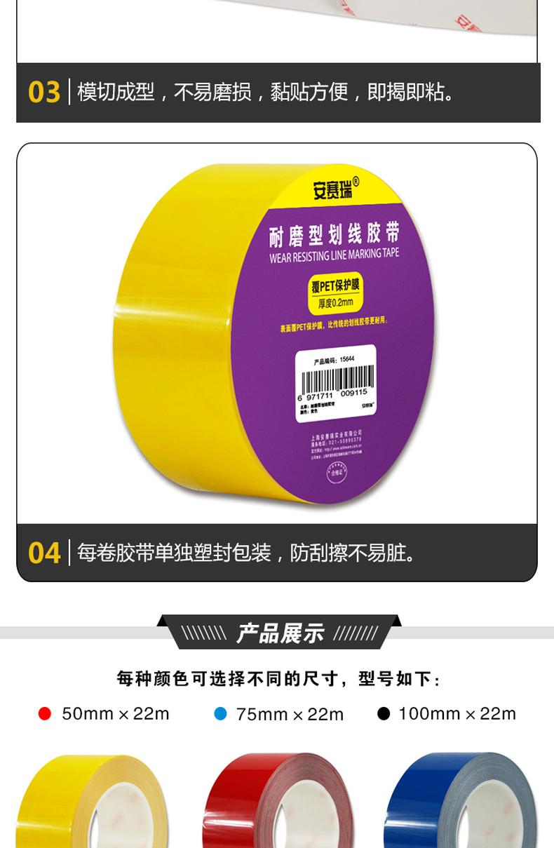 供应商:史泰博 品牌:安赛瑞 产地:中国 重量:1.000KG 销售单位:卷 包装清单:安赛瑞 15641 耐磨型划线胶带(黄黑条纹) 100mm×22m*1
