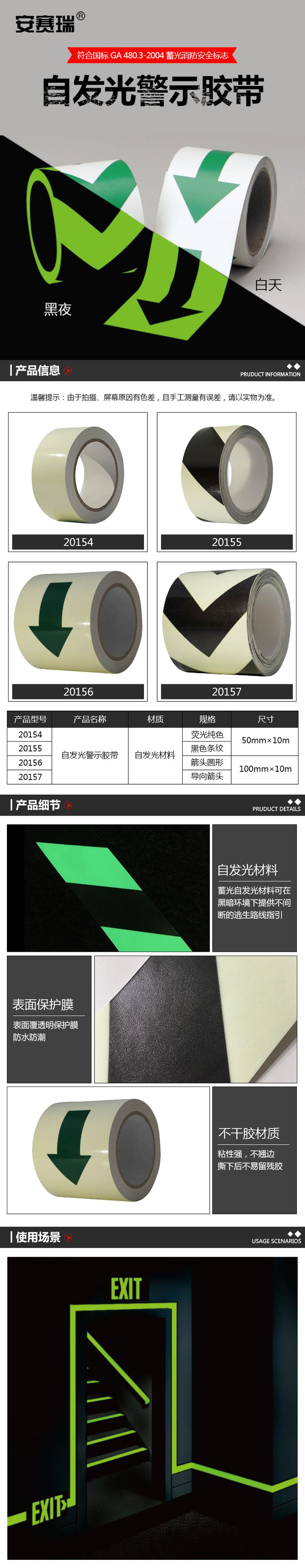 供应商:史泰博 品牌:安赛瑞 产地:中国 重量:1.000KG 销售单位:卷 包装清单:安赛瑞 20157 自发光警示胶带(导向箭头) 100mm×10m*1