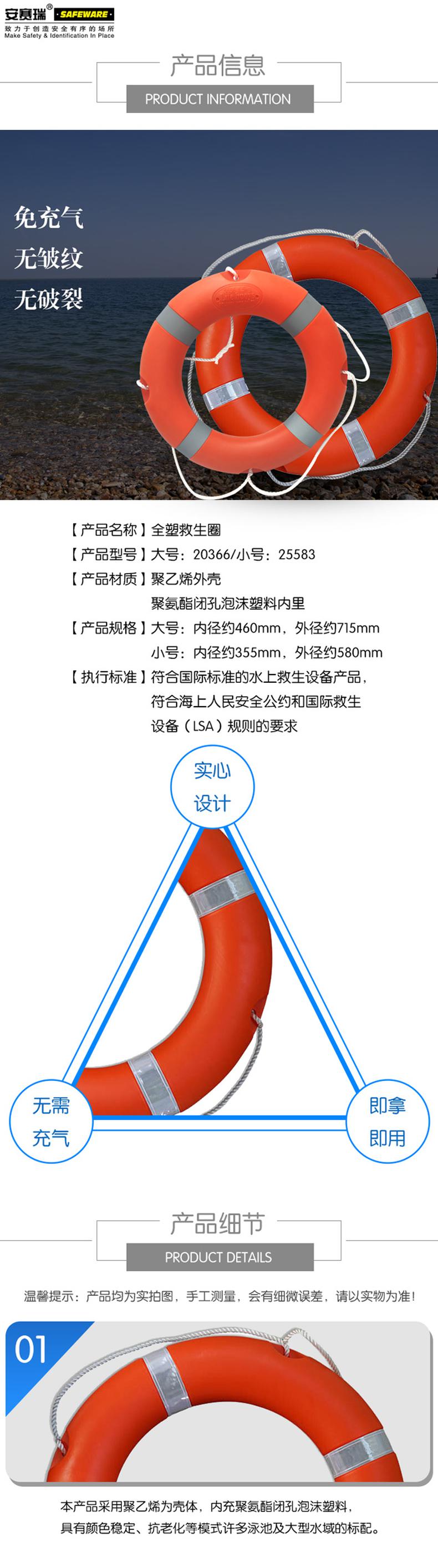 安赛瑞 20366 救生圈 内径440mm,外径720mm 橙色按(个)销售   收藏