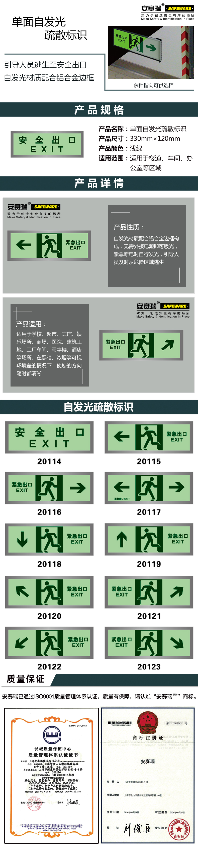 供应商:史泰博 品牌:安赛瑞 产地:中国 重量:0.150KG 销售单位:个 包装清单:安赛瑞 20122 单面自发光疏散标识(安全出口左下) 120×330mm*1