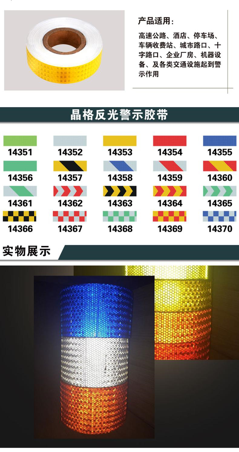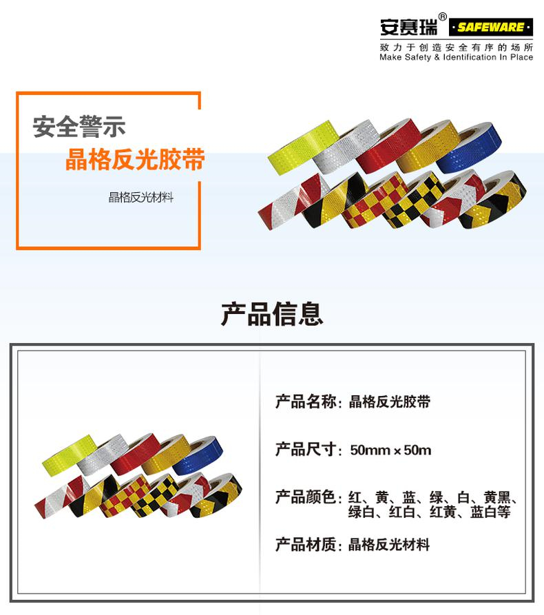 供应商:史泰博 品牌:安赛瑞 产地:中国 重量:1.000KG 销售单位:卷 包装清单:安赛瑞 14366 超级晶格反光警示胶带 黑黄色 50mm×50m*1
