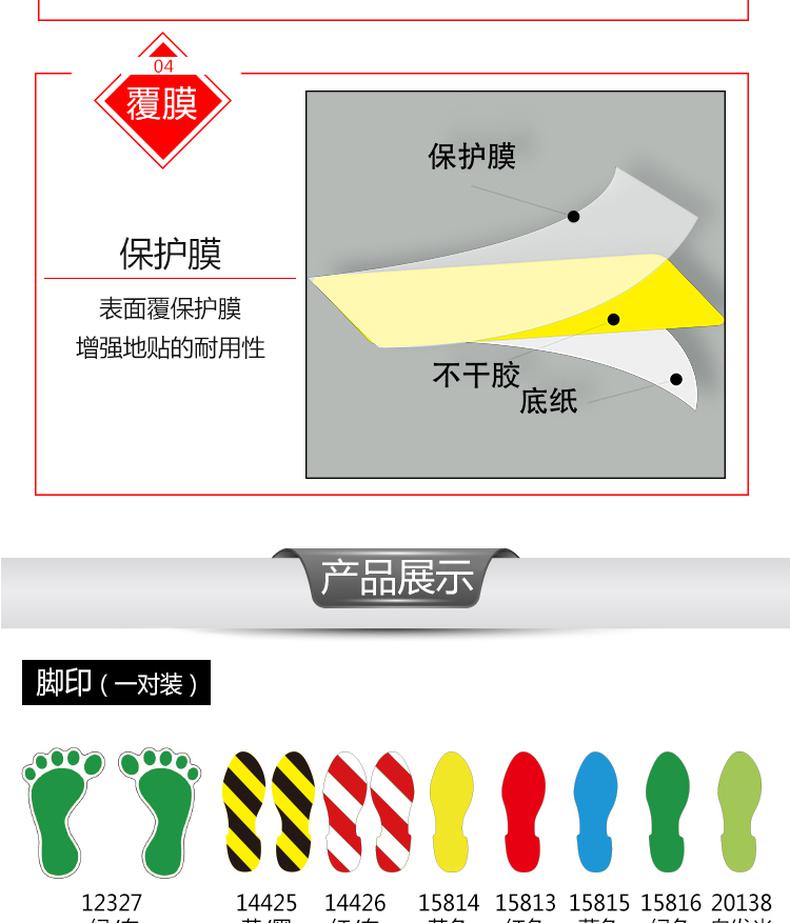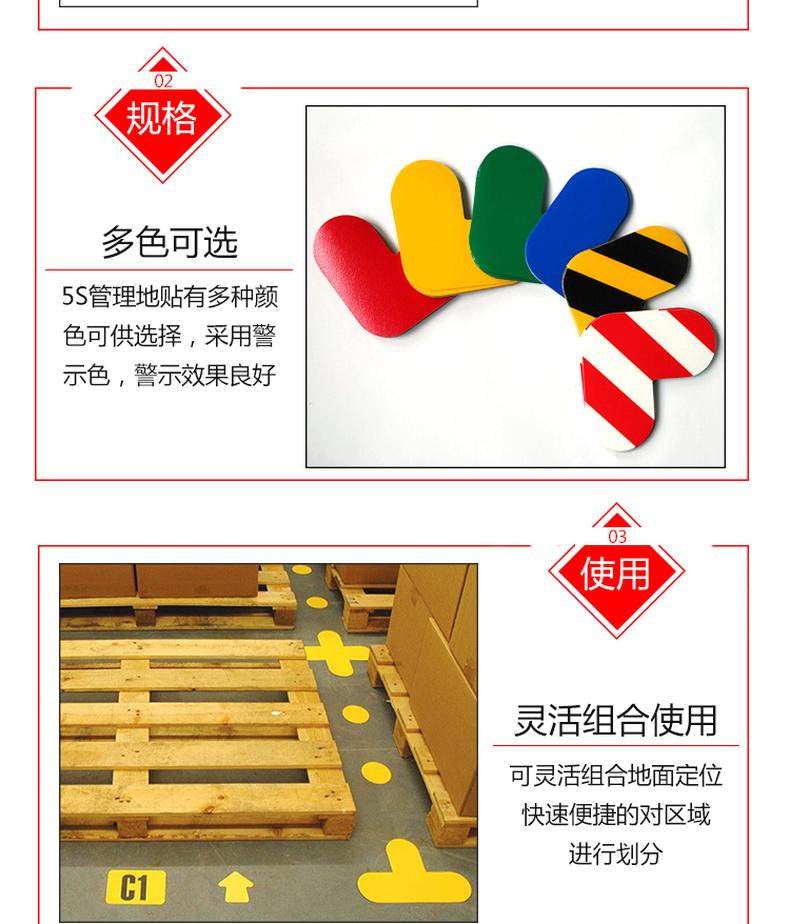 供应商:史泰博 品牌:安赛瑞 产地:中国 重量:0.500KG 销售单位:包 包装清单:安赛瑞 15811 5S管理地贴(T型) 红白色 100×150mm,10个/包*1