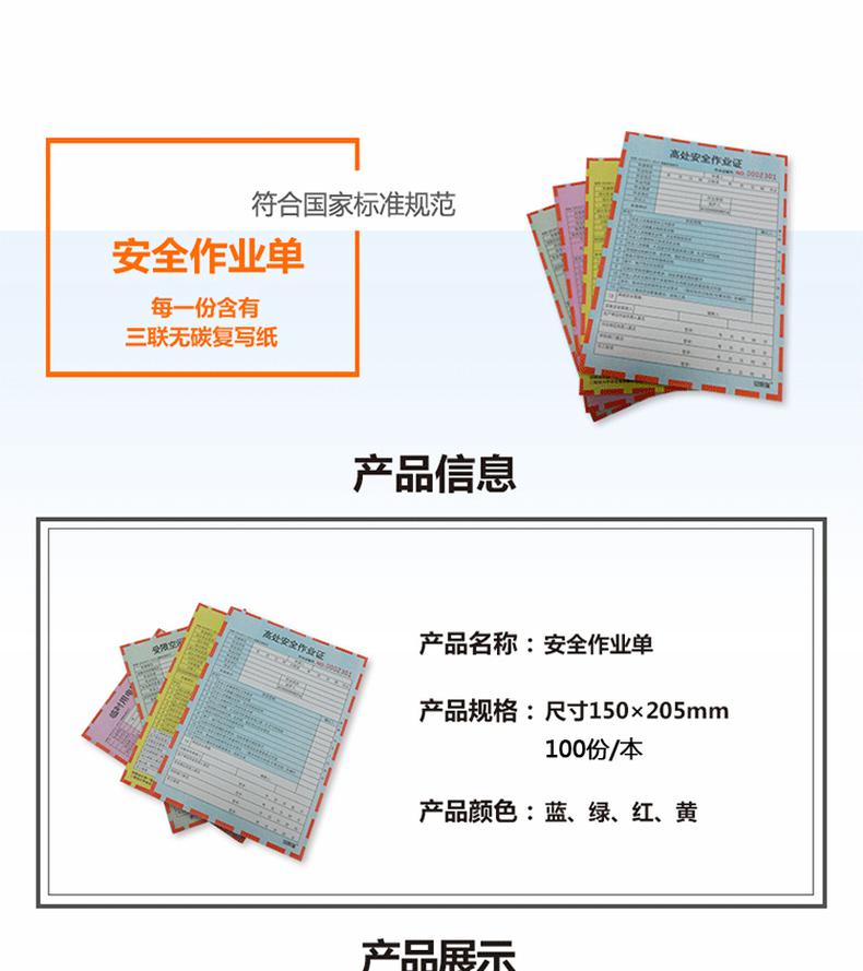 安赛瑞 31363 安全作业许可证(受限空间安全作业证) 淡绿色 150×205mm,100份/本按(本)销售   收藏