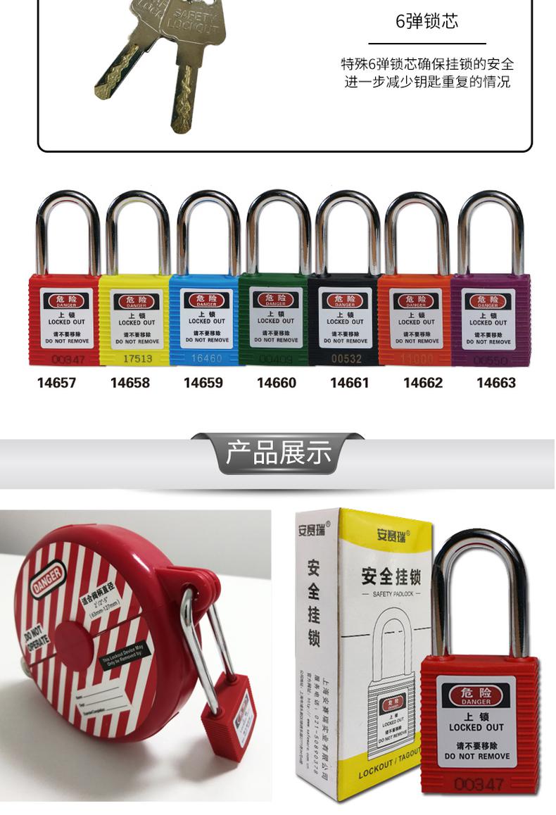 • 安赛瑞 14660 工程塑料安全挂锁  绿色 锁梁Φ6mm,高38mm按(把)销售