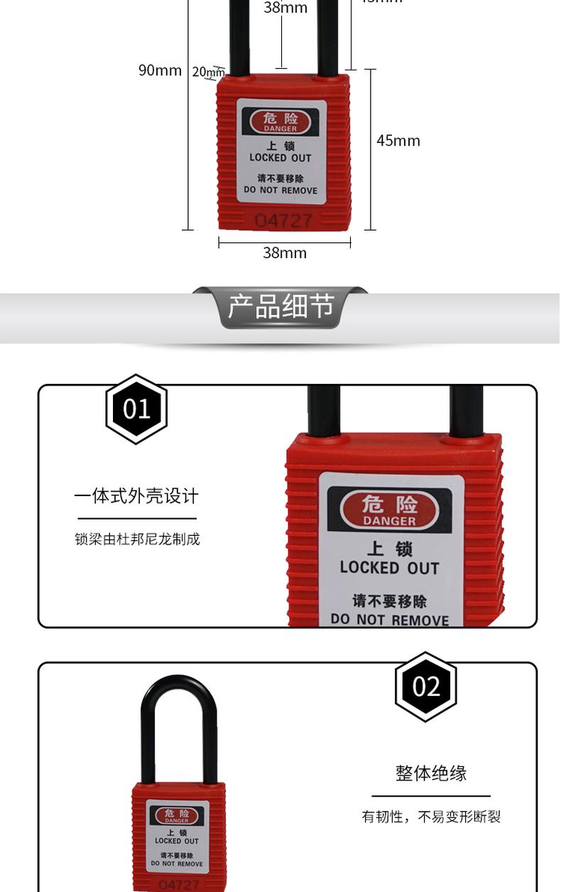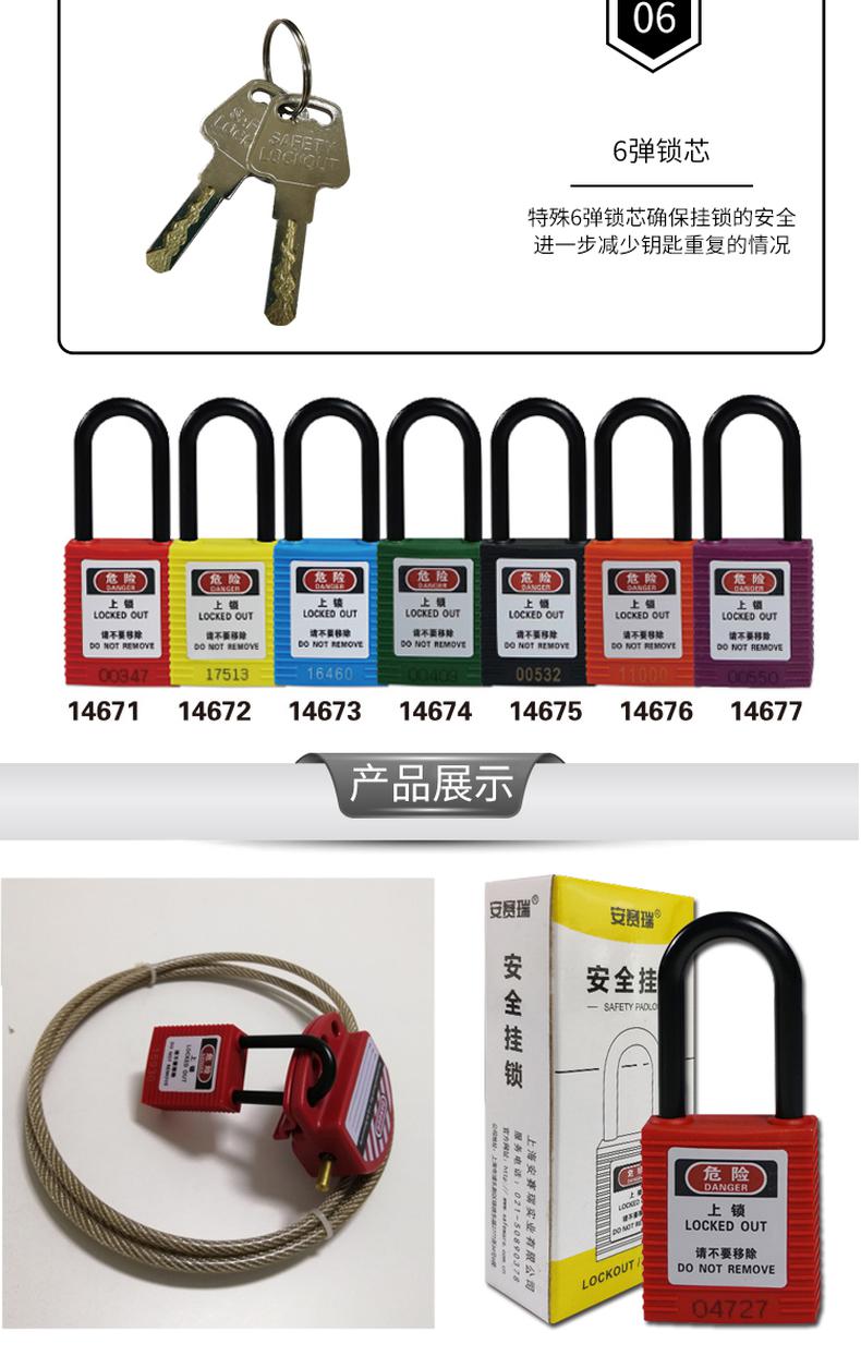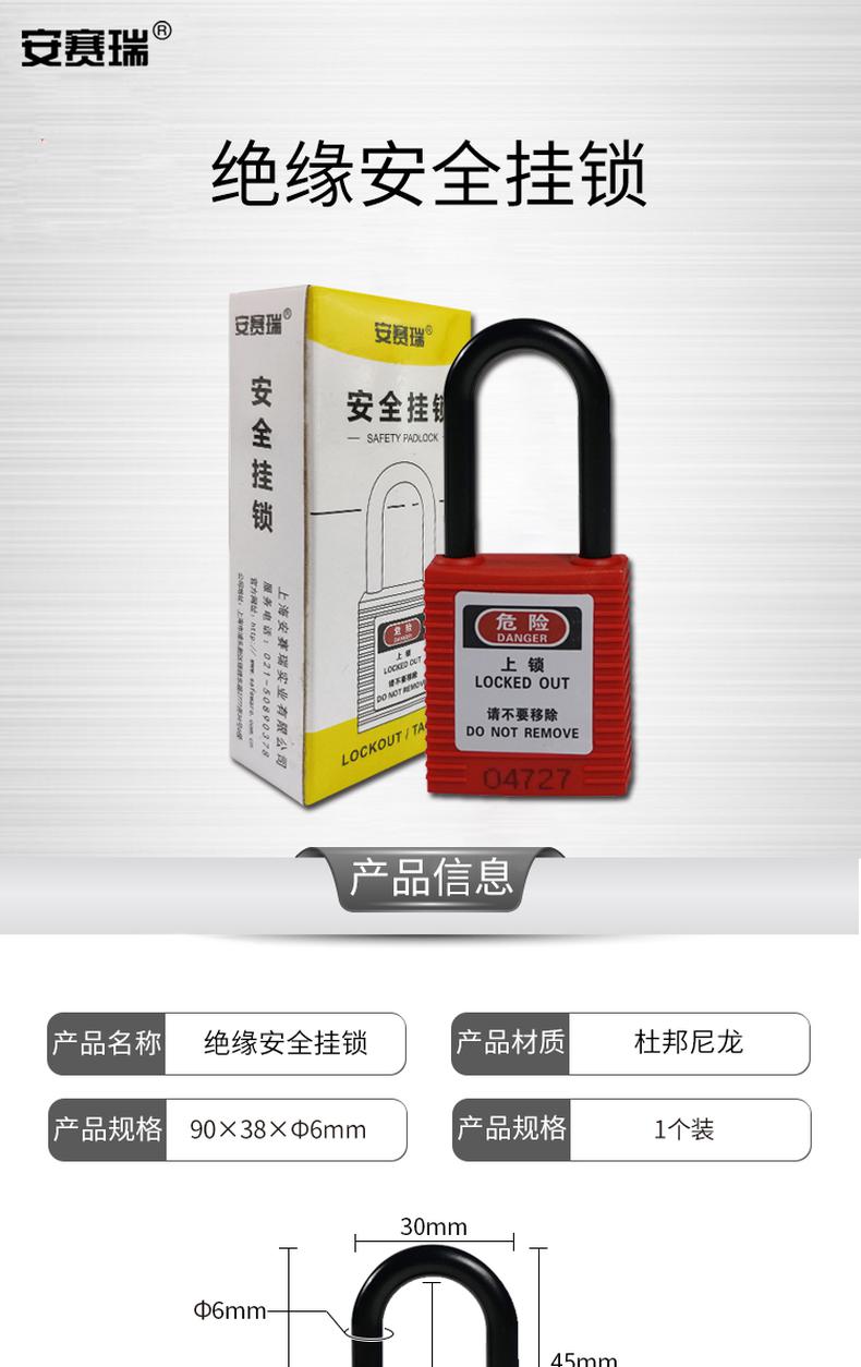 供应商:史泰博 品牌:安赛瑞 产地:中国 重量:0.200KG 销售单位:把 包装清单:安赛瑞 14674 绝缘安全挂锁 绿色 锁梁Φ6mm,高38mm*1
