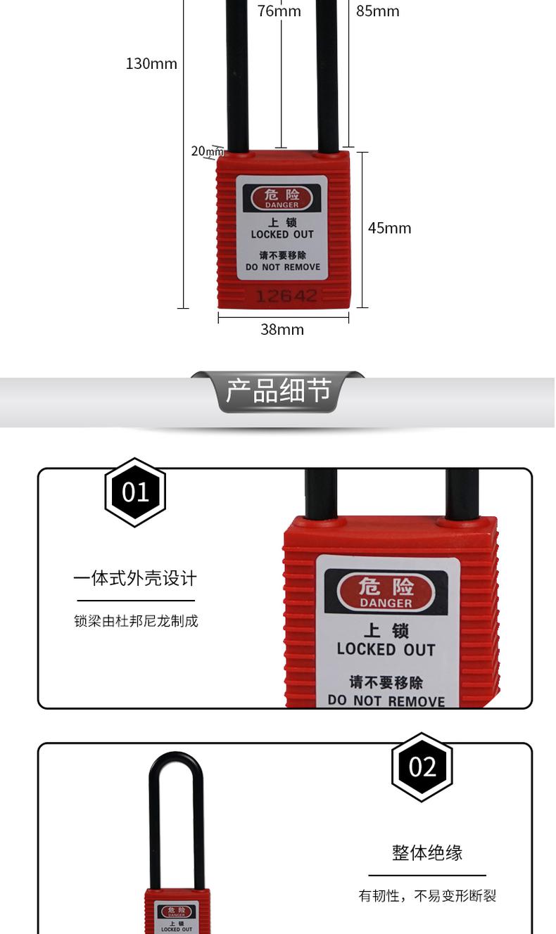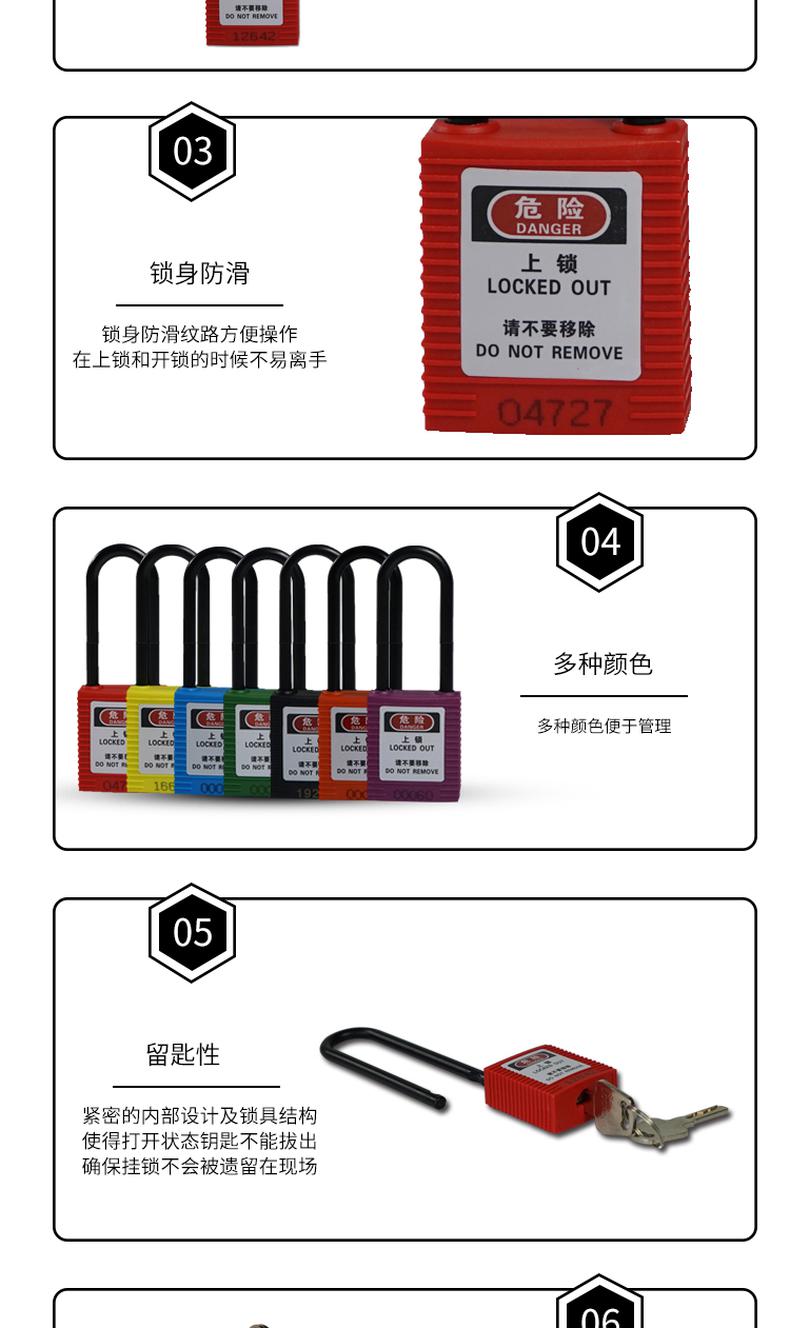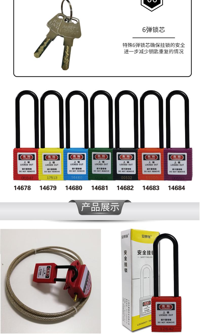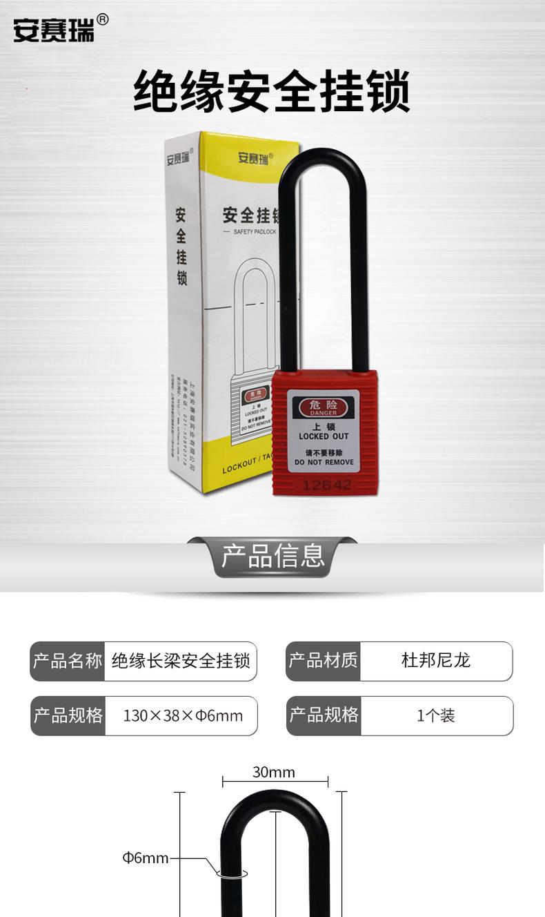 供应商:史泰博 品牌:安赛瑞 产地:中国 重量:0.300KG 销售单位:把 包装清单:安赛瑞 14683 长梁绝缘安全挂锁 橙色 锁梁Φ6mm,高76mm*1