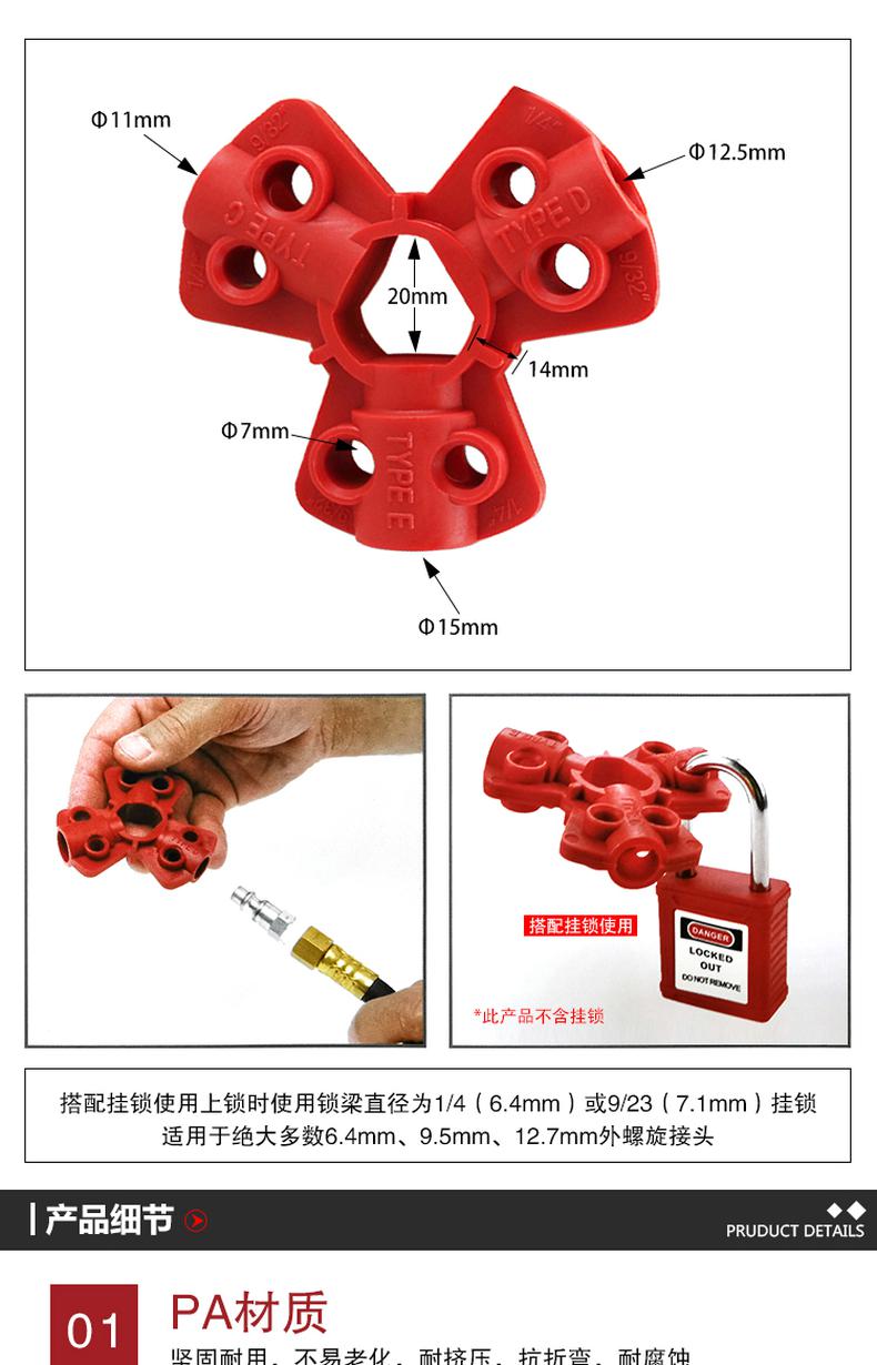 安赛瑞 37042 气源锁具 红色 锁梁Φ6.4mm和Φ7.1mm按(个)销售   收藏