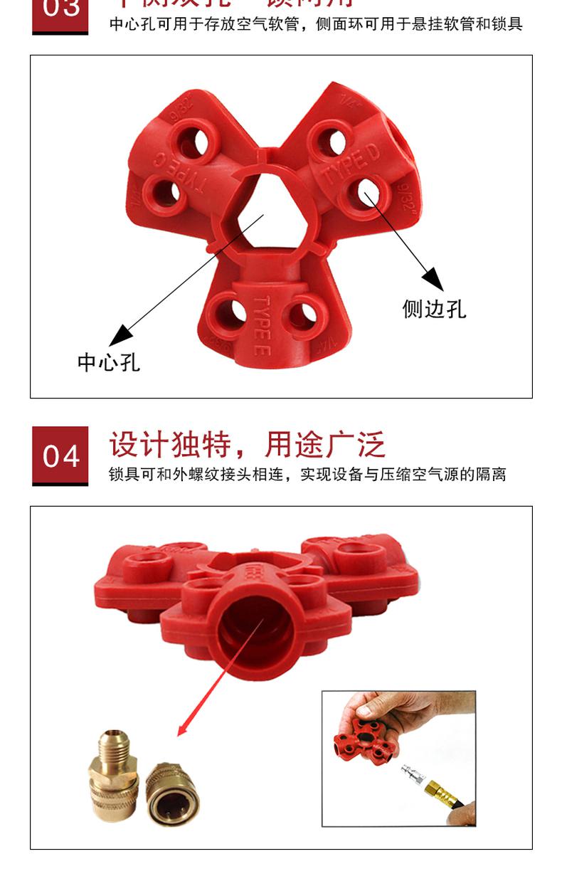 • 安赛瑞 37042 气源锁具  红色 锁梁Φ6.4mm和Φ7.1mm按(个)销售