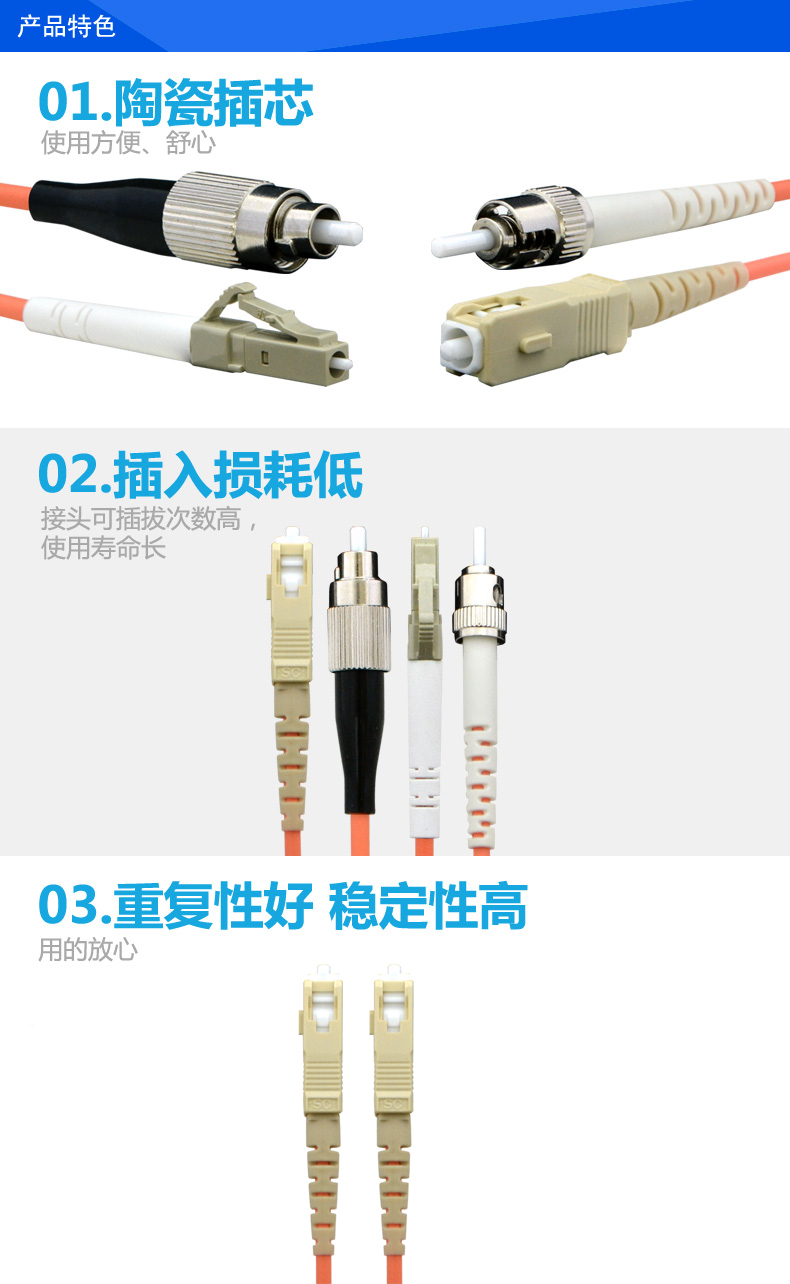 | 其他特性 | 插入损耗低,插头插拔次数高,使用寿命长 |