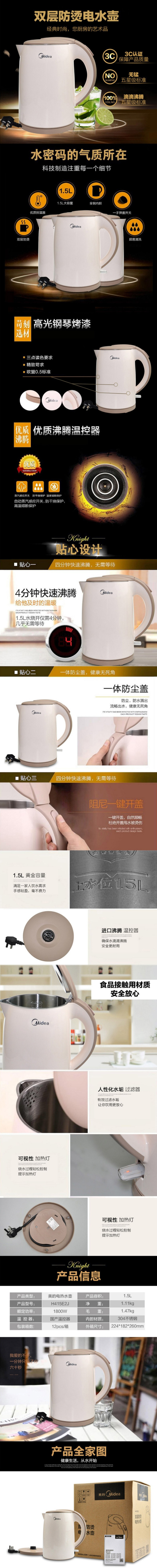 | 特色功能 | 一键开盖不甩水 防干烧无隐患 1.5L黄金容量 |