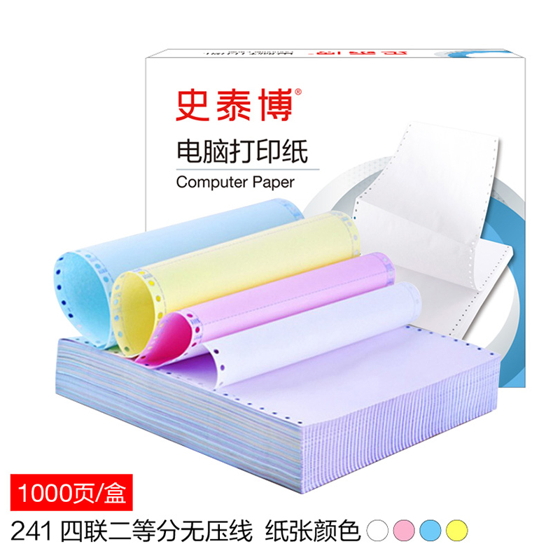 • 史泰博 241四联二等分无压线 电脑打印纸 1000页/箱 彩色按(箱)销售