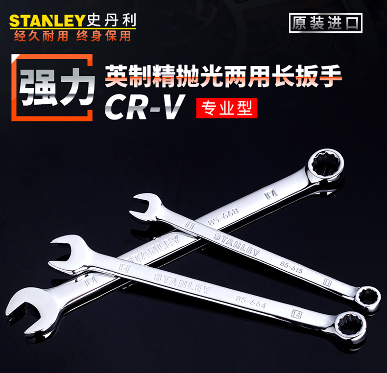 • 史丹利 85-471-1-22 强力型英制精抛光两用长扳手 13/16"按(把)销售