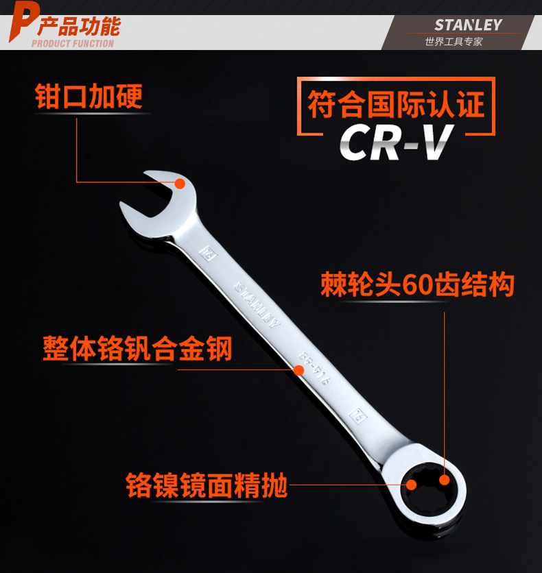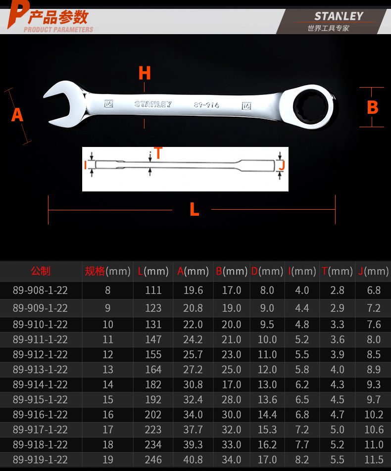 • 史丹利 89-914-1-22 公制精抛光棘开两用快扳 14mm按(把)销售