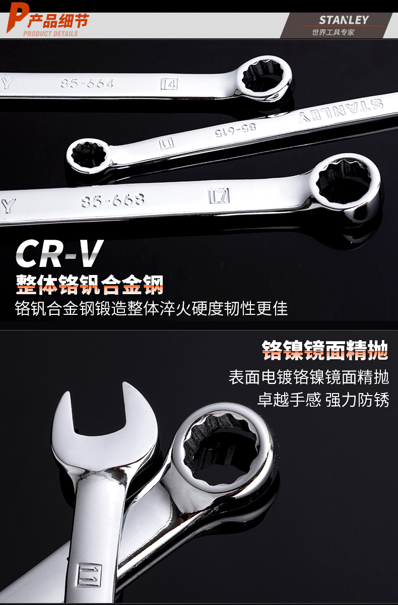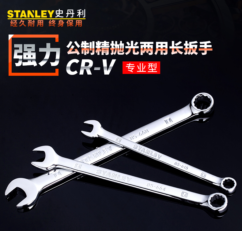 史丹利 85-594-1-22 强力型公制精抛光两用长扳手 9mm按(把)销售   收藏