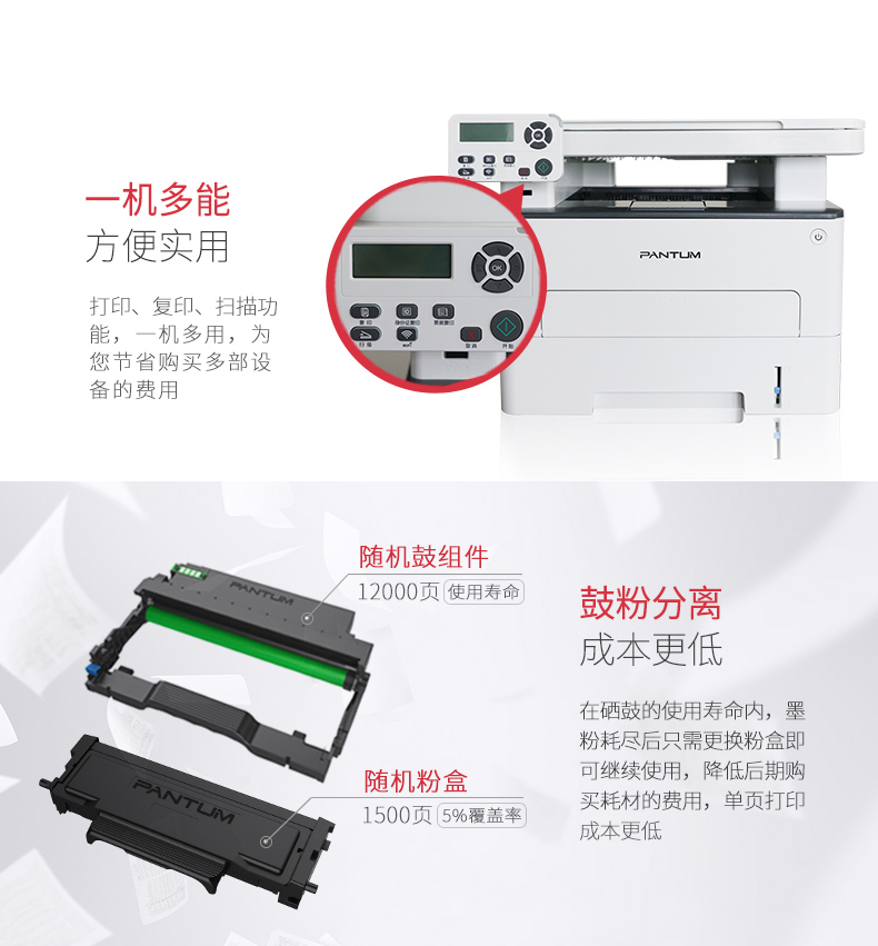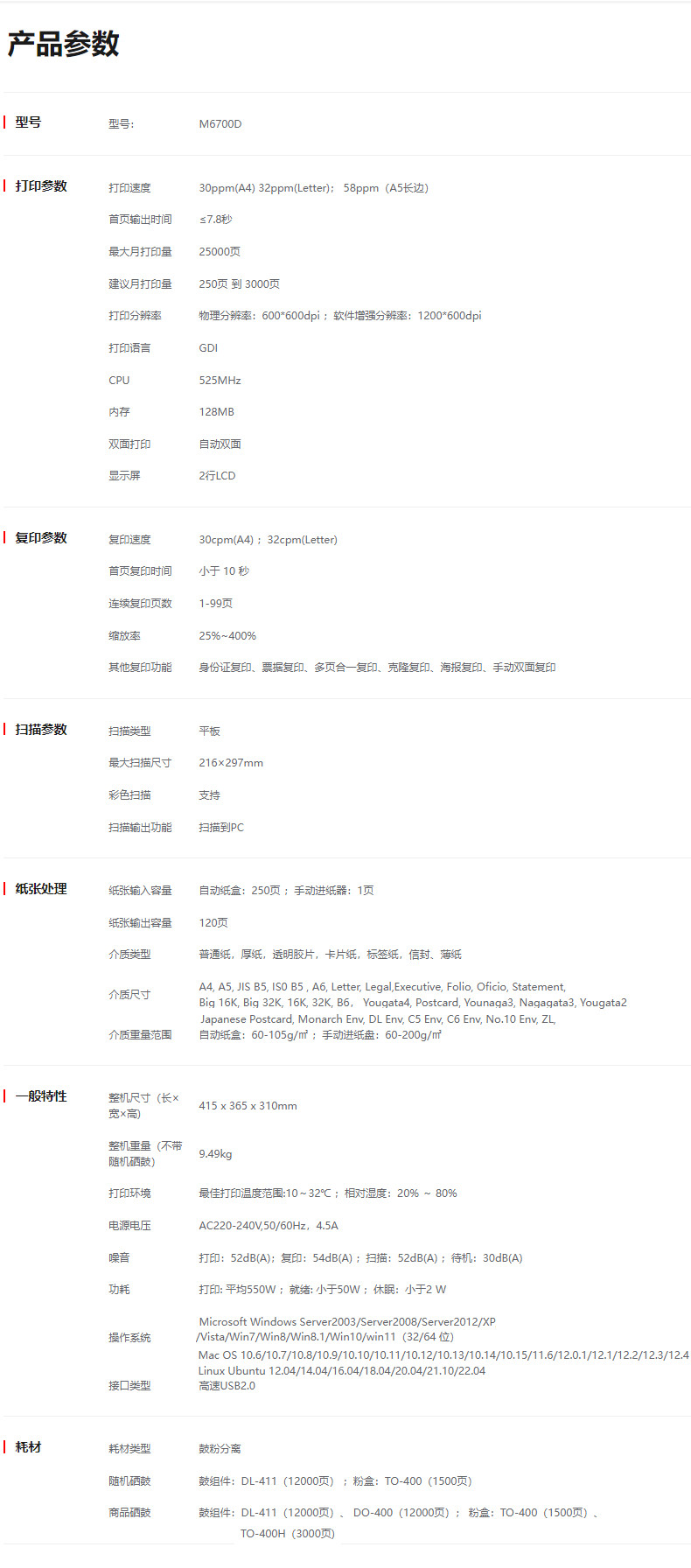 | 耗材 | 鼓组件:DL-411 粉盒:TO-400 |