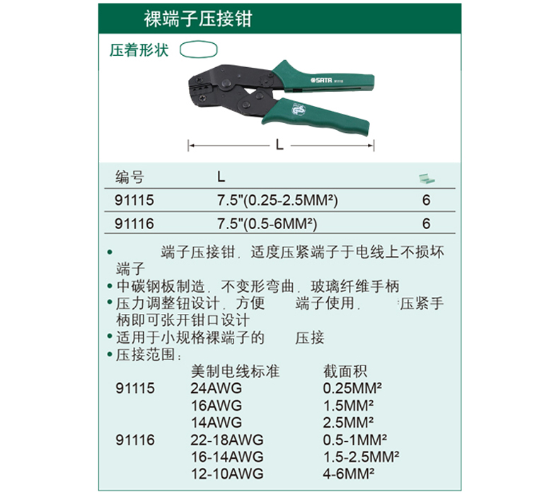 | 规格 | 7.5"(0.25-2.5MM2) |