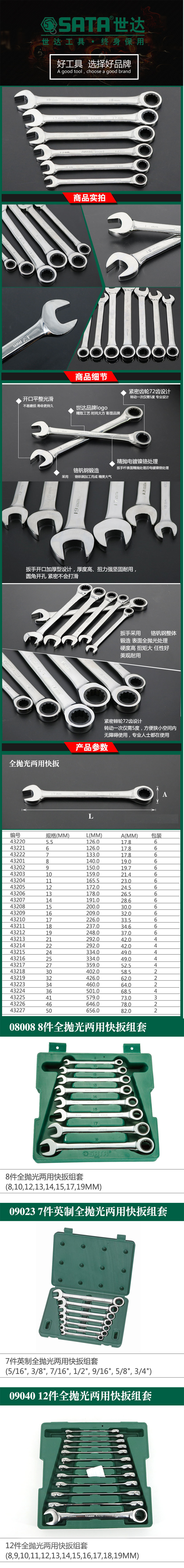 • 世达 43214 全抛光两用快扳 22MM按(把)销售