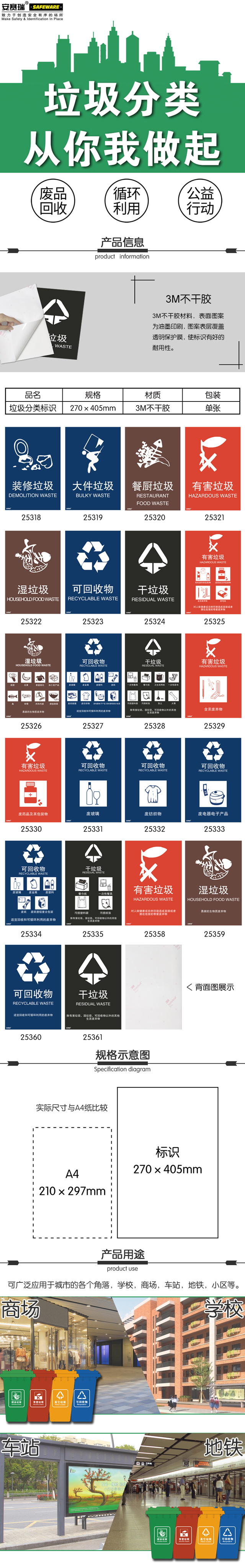 • 安赛瑞 25331 垃圾分类标志标识(可回收物) 3M不干胶270×405mm 红色按(张)销售