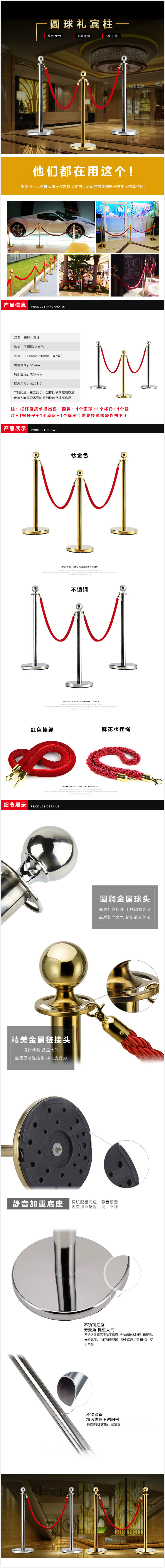 谋福 8254 圆头礼宾柱迎宾杆 不含挂绳 钛金色 2组起订按(件)销售   收藏