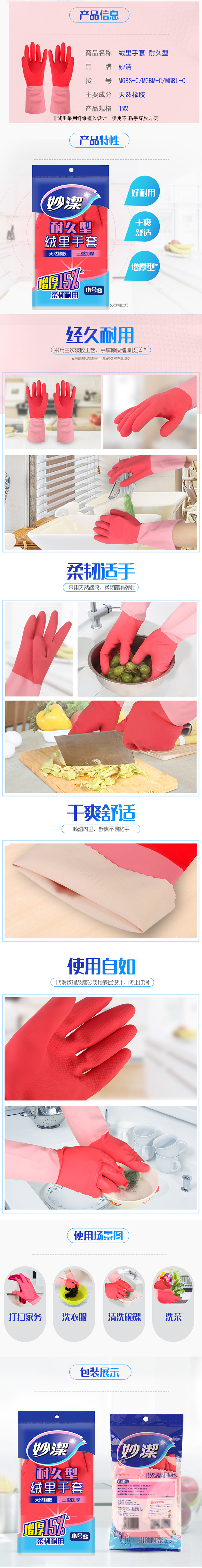 妙洁 耐久型 绒里手套 S号 随机色按(包)销售   收藏