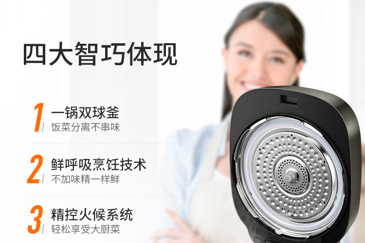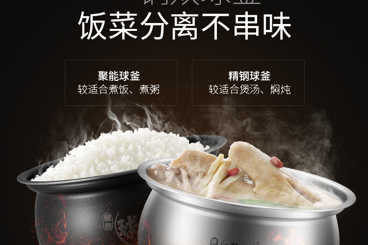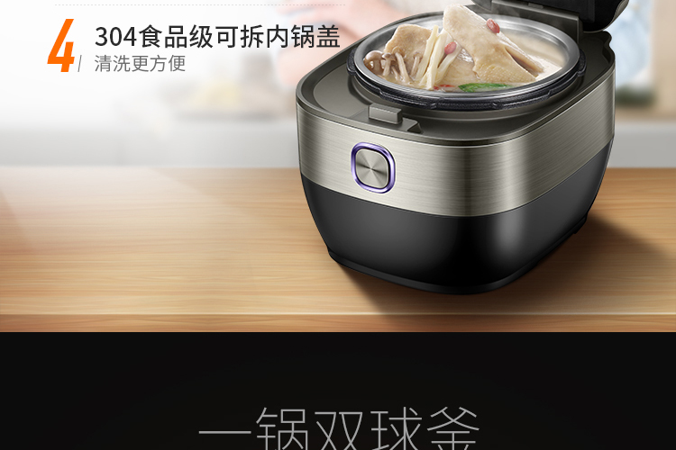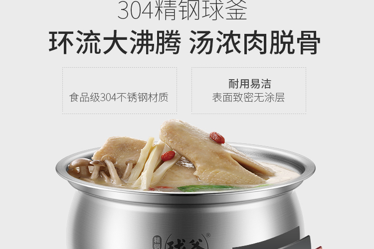 | 特色功能 | 304精钢球釜、5L大容量、精控火候系统、一锅双球釜、置顶操作界面 |