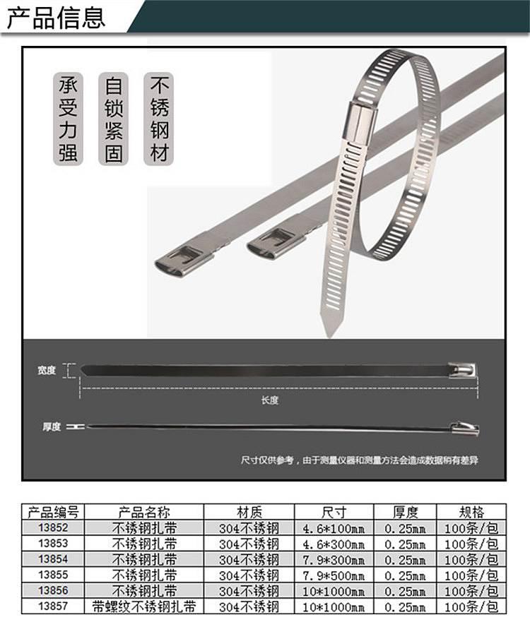 安赛瑞 13857 不锈钢扎带(100根装)10×1000mm银按(包)销售   收藏