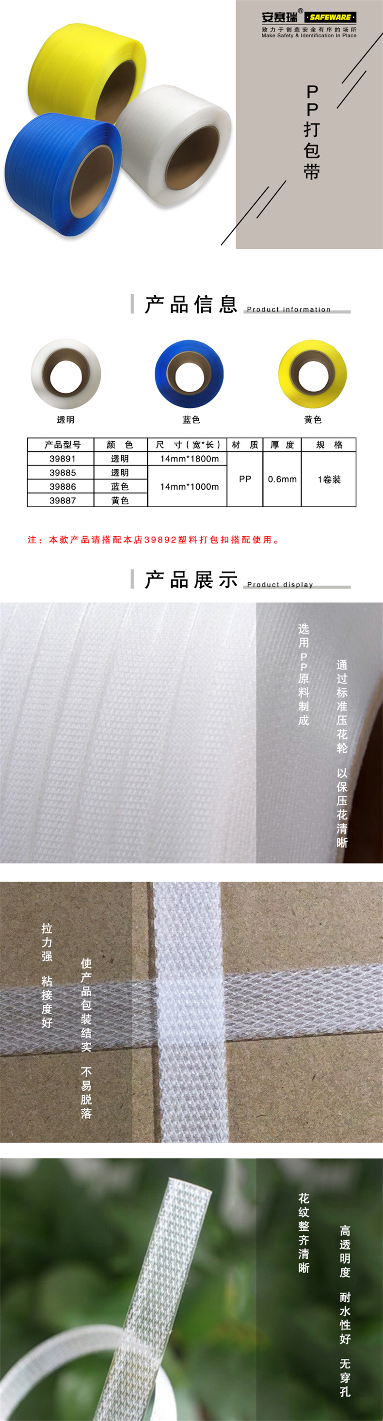 • 安赛瑞 39891 透明PP打包带(1800米)透明按(卷)销售
