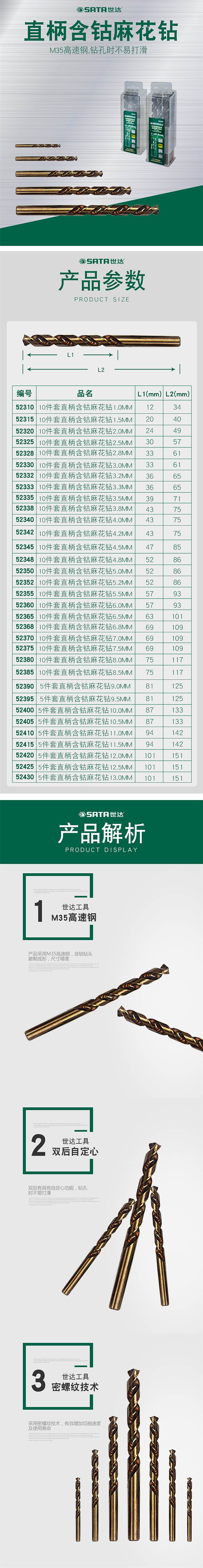 • 世达 52338 直柄含钴麻花钻套装 10件套 3.8MM按(套)销售