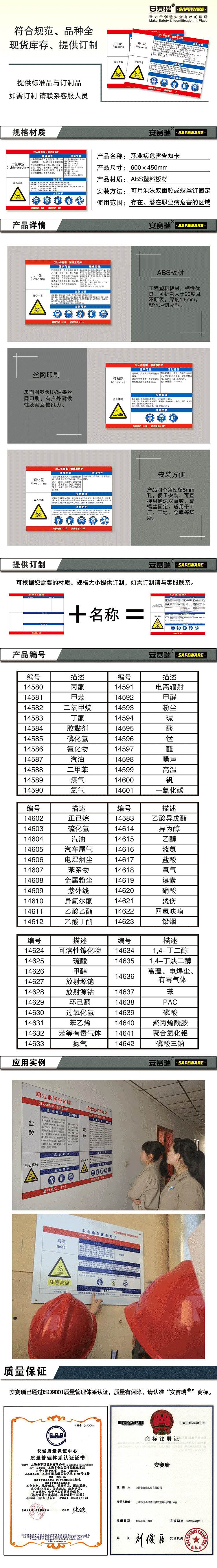 • 安赛瑞 14603 职业病危害安全周知卡(硫化氢)ABS600*450mm 彩色按(张)销售