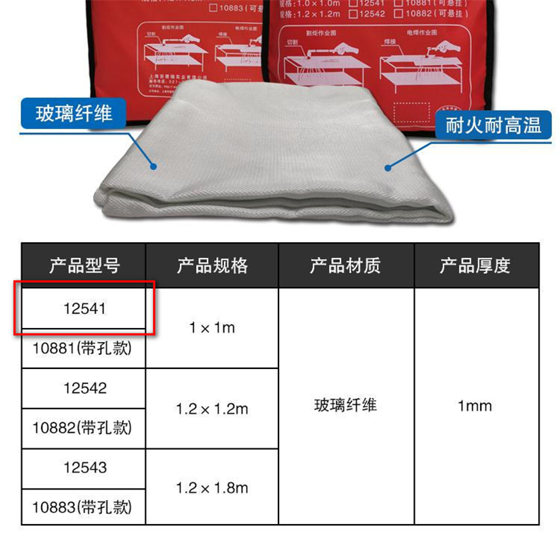• 安赛瑞 12541 电焊防火毯 灭火毯 1×1m按(张)销售