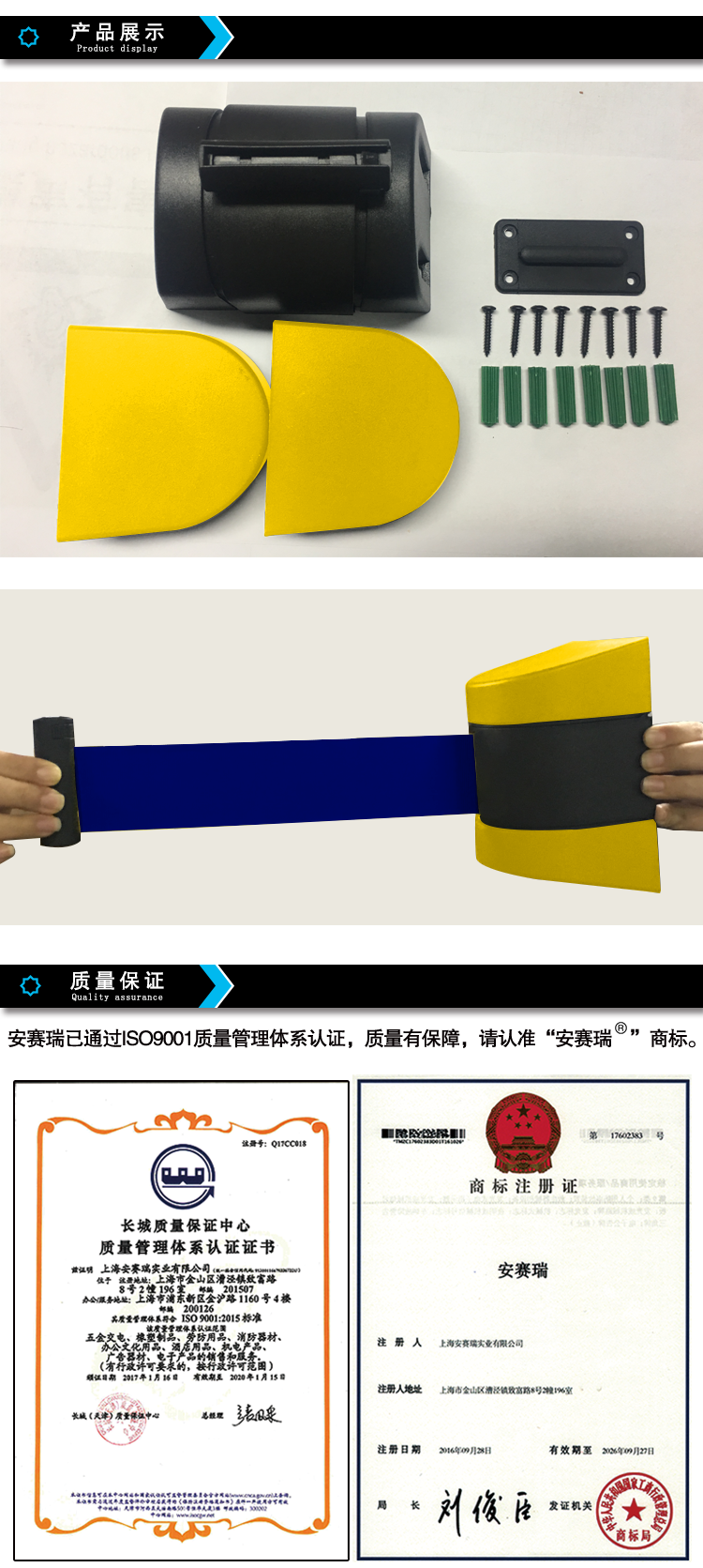 安赛瑞 11318 壁挂式伸缩隔离带按(个)销售   收藏