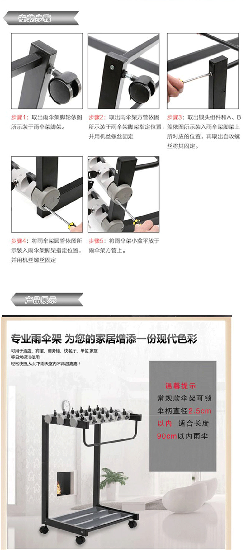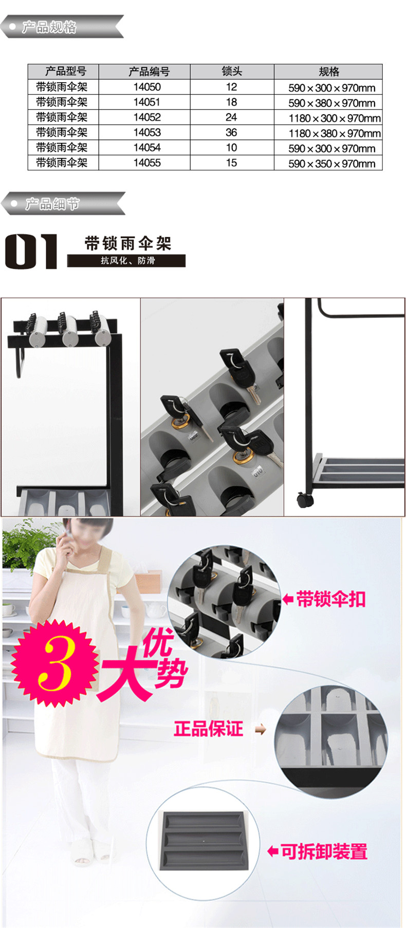安赛瑞 14053 带锁雨伞架36头 1180×380×970mm按(套)销售   收藏