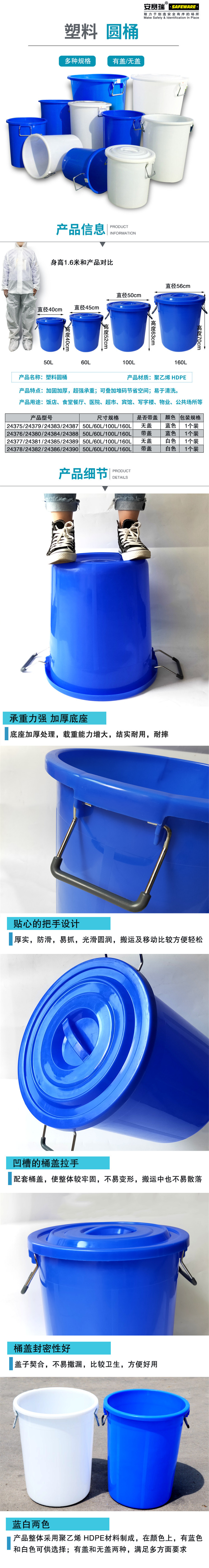 • 安赛瑞 24390 大号塑料圆桶有盖 160L 白色按(套)销售