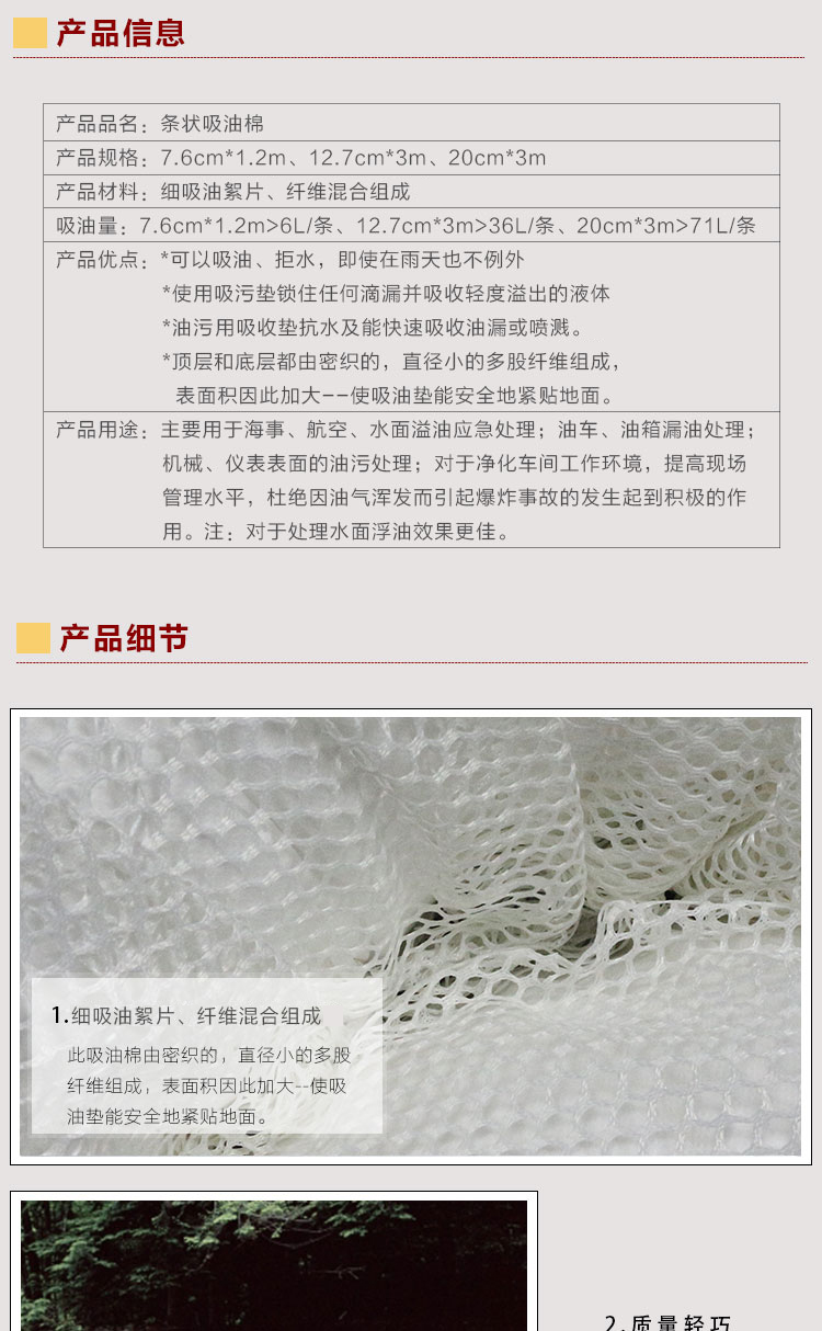 谋福 8259 吸油索 吸油棉 吸油毡 (白色吸油条 尺寸: 20cm*3m)按(条)销售   收藏