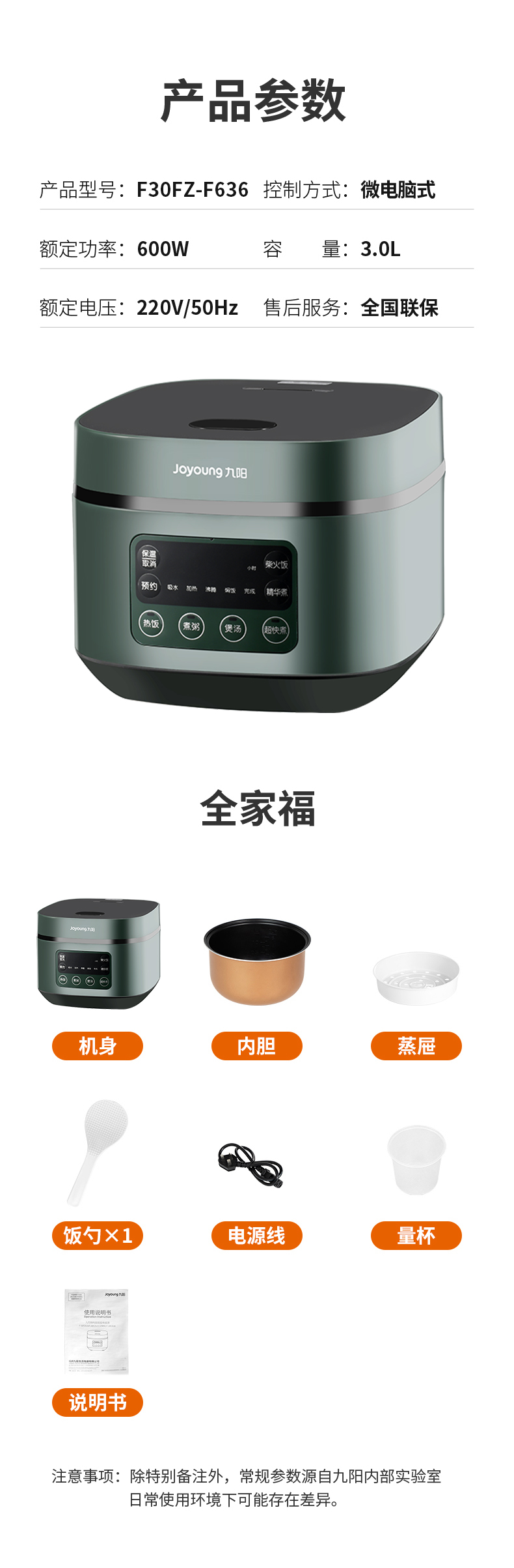 | 包装清单 | 电饭煲*1,说明书*1 |
