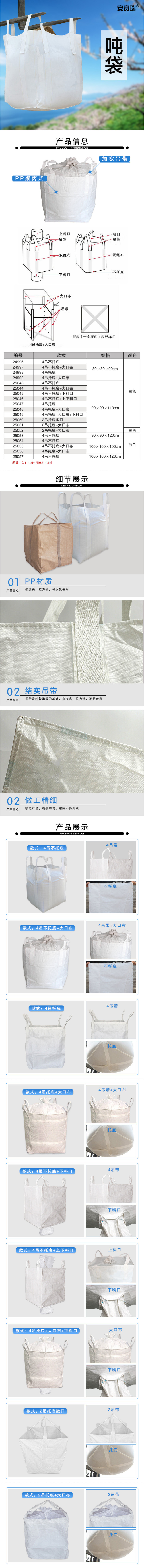 安赛瑞 25050 吨袋集装袋 90×90×110cm 白色2吊托底敞口按(个)销售   收藏