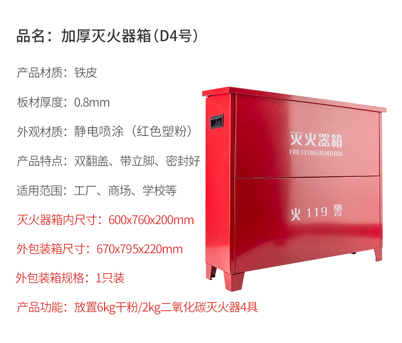 • 轰烈消防 D4# 低4号灭火器箱(铁皮0.8mm) 空箱600*760*200mm按(个)销售