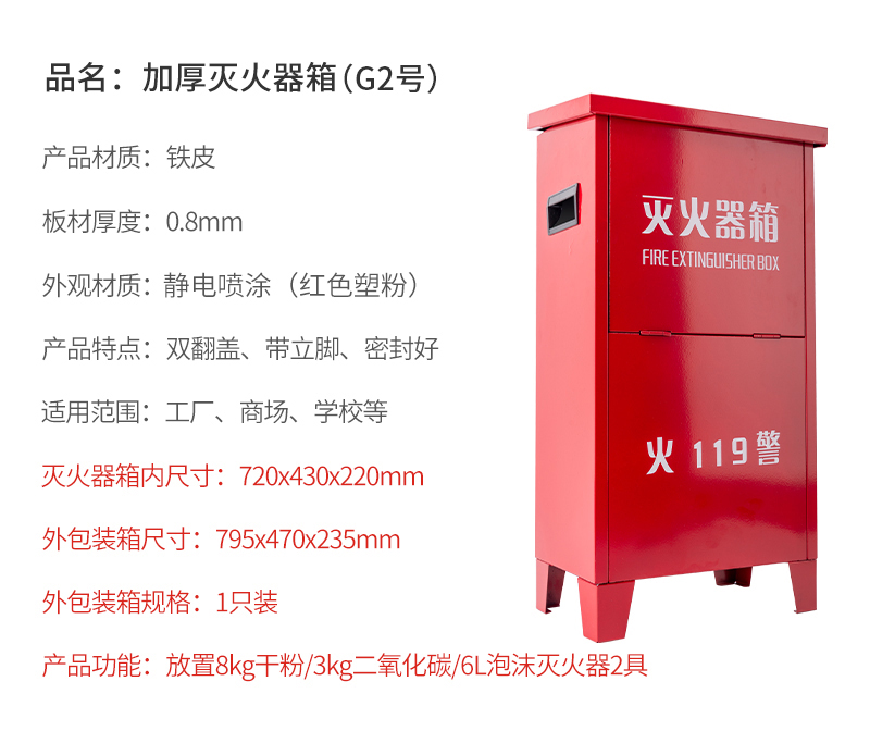 • 轰烈消防 G2# 高2号灭火器箱(铁皮0.8mm) 空箱720*430*220mm按(个)销售