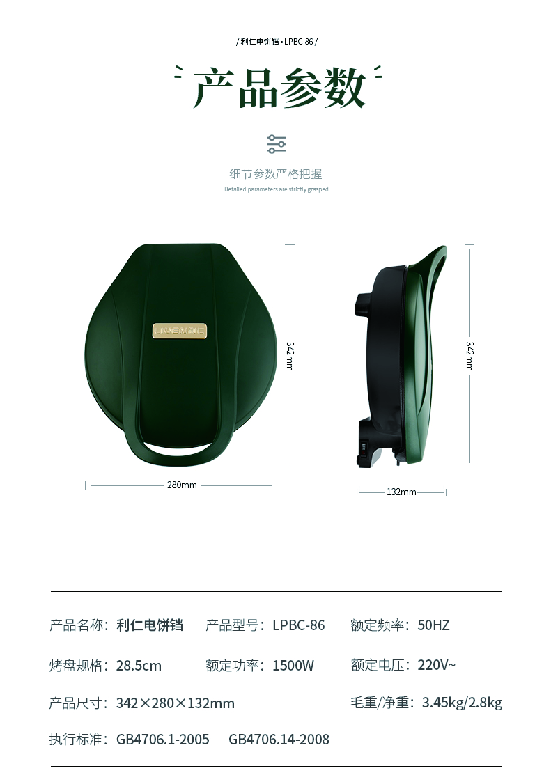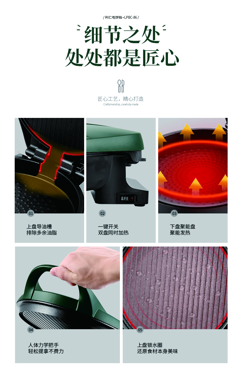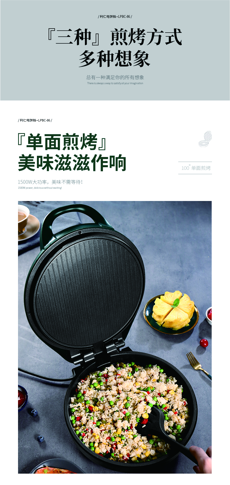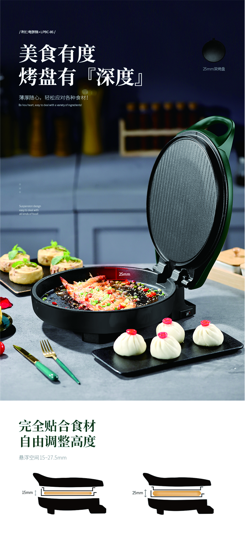 | 特色功能 | 家用加深电饼锅双面加热 |