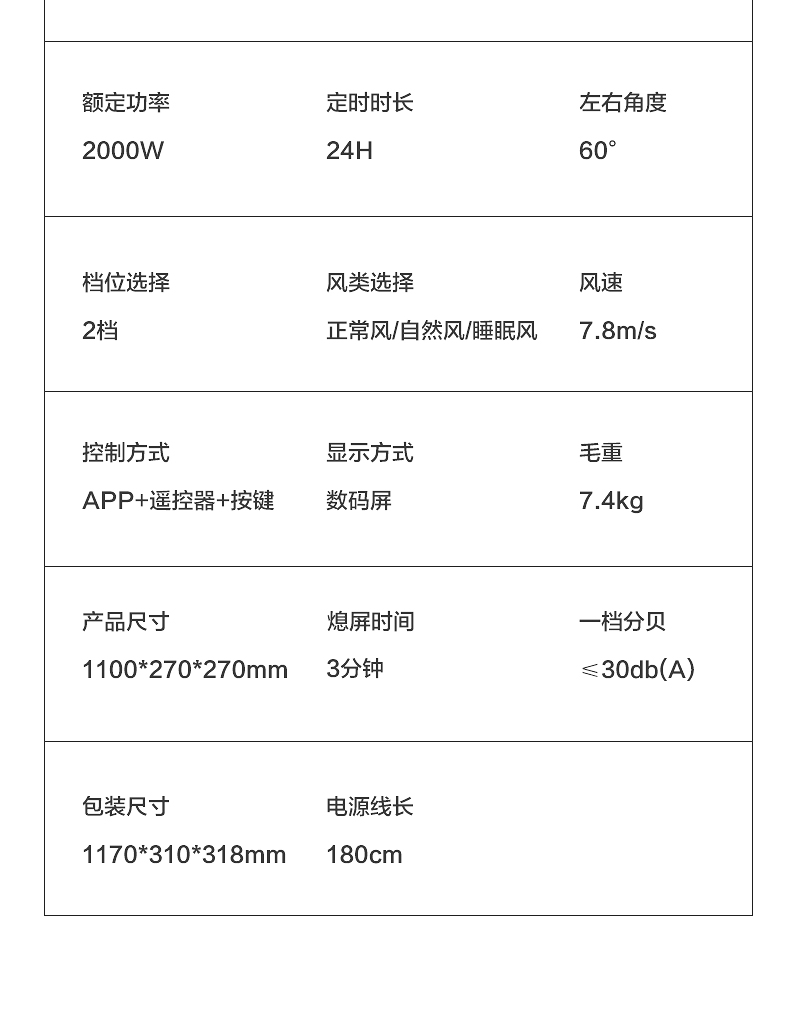 | 包装清单 | 暖风机*1,说明书*1 |