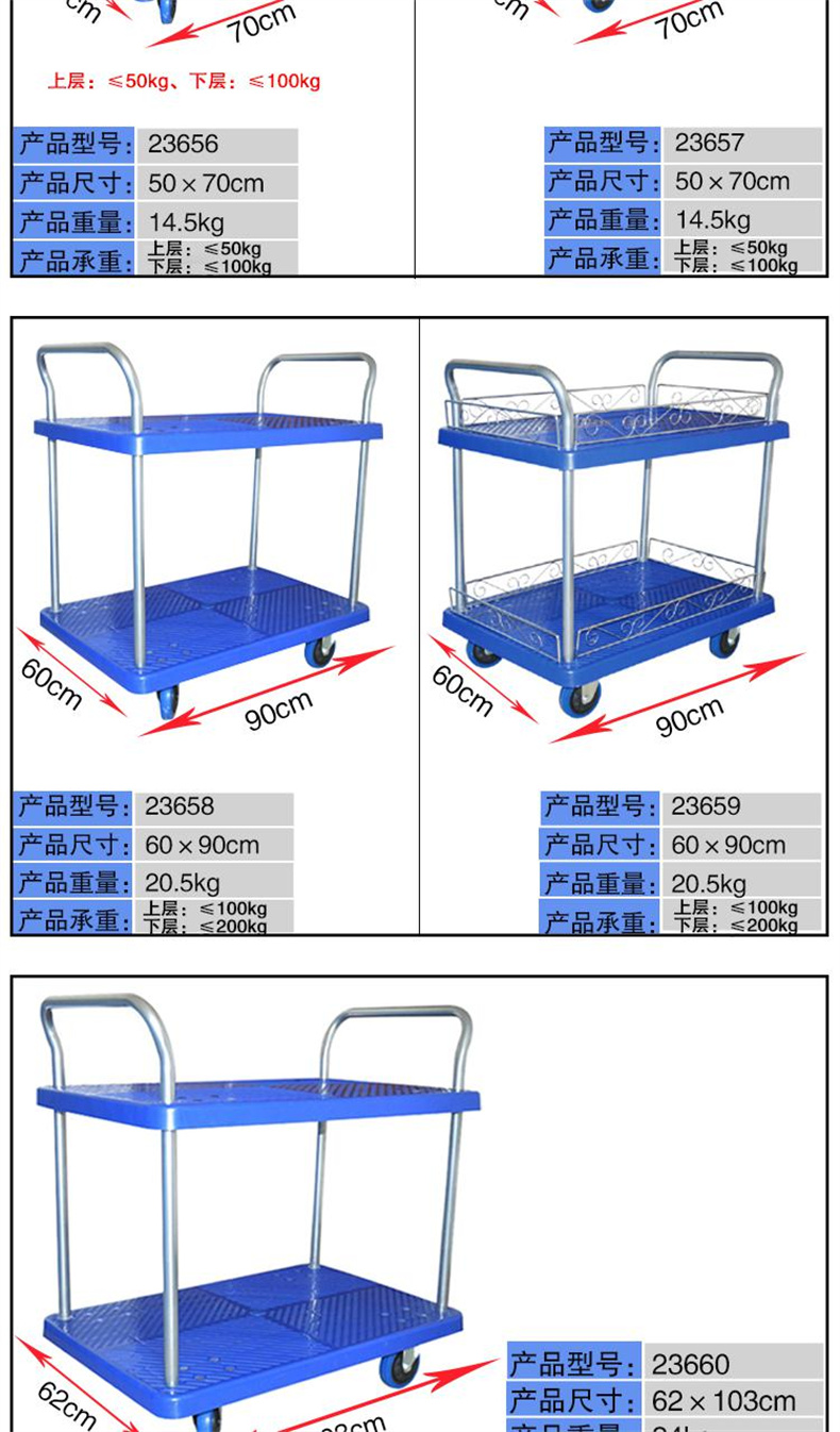 • 安赛瑞 23657 双层平板手推车 50×70cm 带护栏 承重150kg按(辆)销售