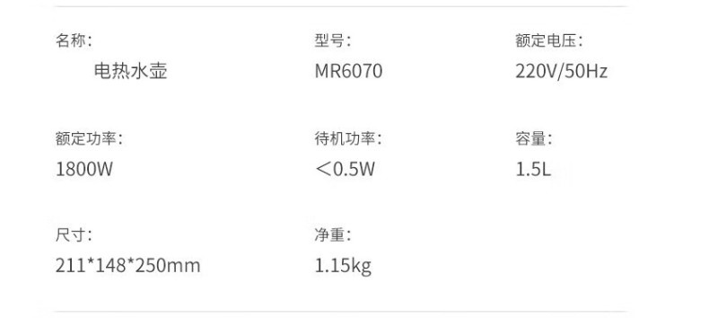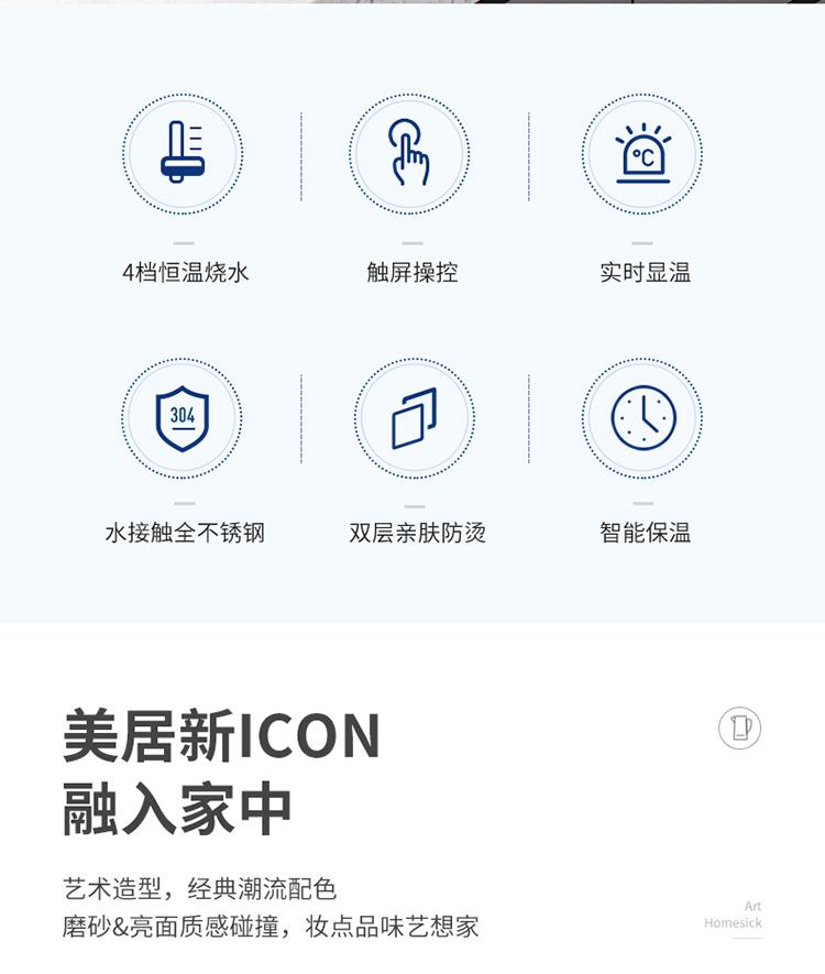 | 特色功能 | 4档恒温烧水,时时显温,双层亲肤防烫 |