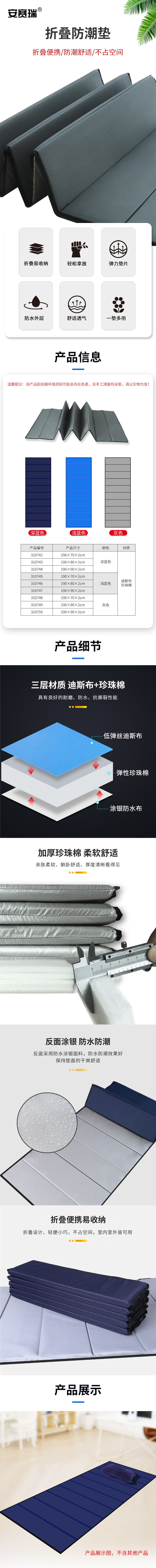 安赛瑞 310742 应急折叠防潮垫 厚20mm长190cm宽70cm 深蓝色按(件)销售   收藏
