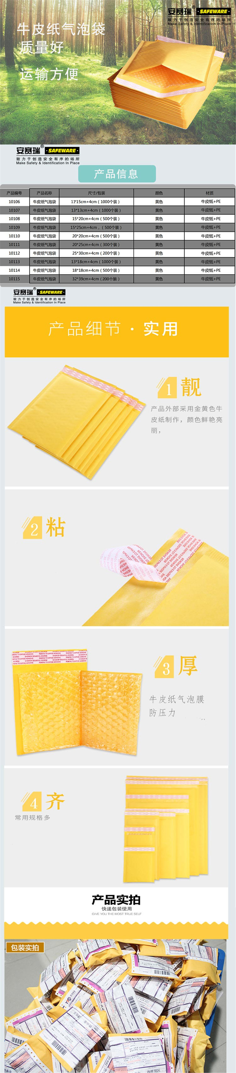 安赛瑞 10106 牛皮纸气泡袋 11×15cm+4cm(1000个装)按(件)销售   收藏