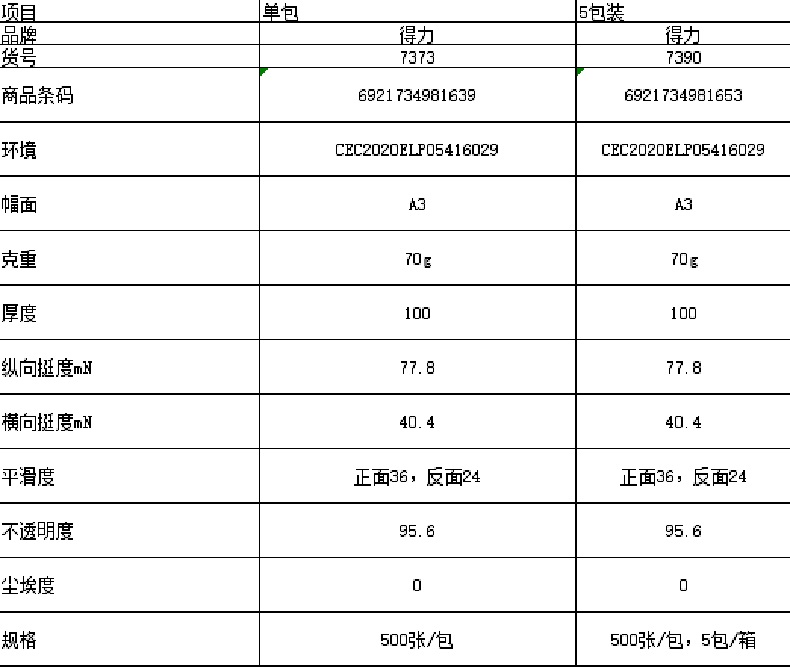 | 复印纸包装清单 | 500张/包 5包/箱 |