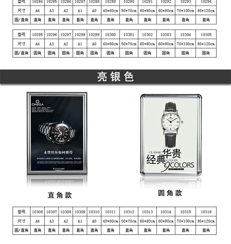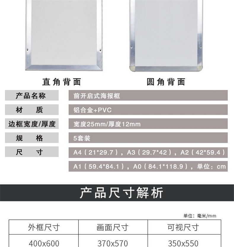 • 安赛瑞 10368 铝合金开启式海报框 (5套装)金色 60×80cm 圆角按(套)销售
