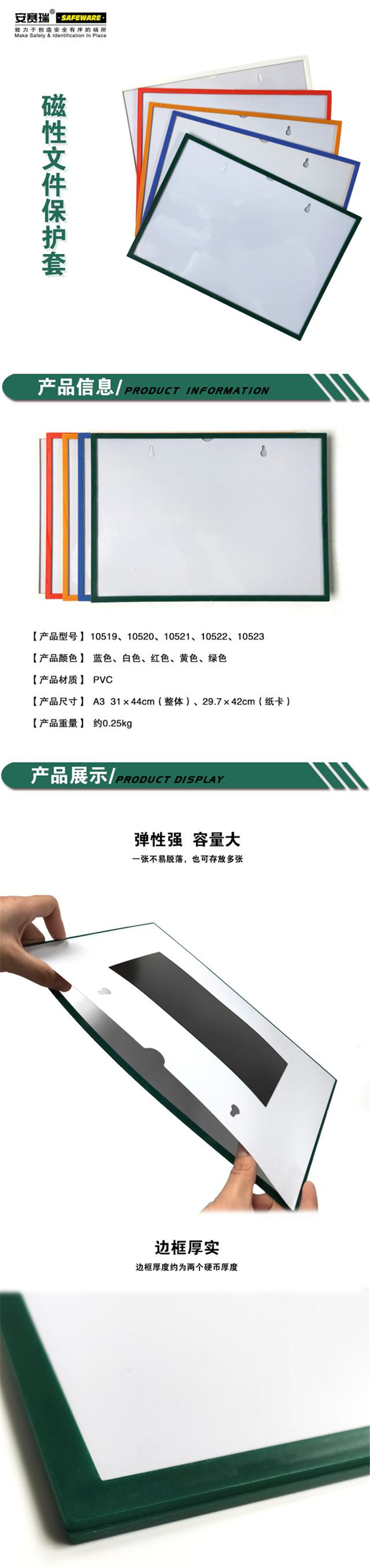 供应商:史泰博 品牌:安赛瑞 产地:中国 重量:0.000KG 销售单位:包 包装清单:加厚磁性文件保护套*1