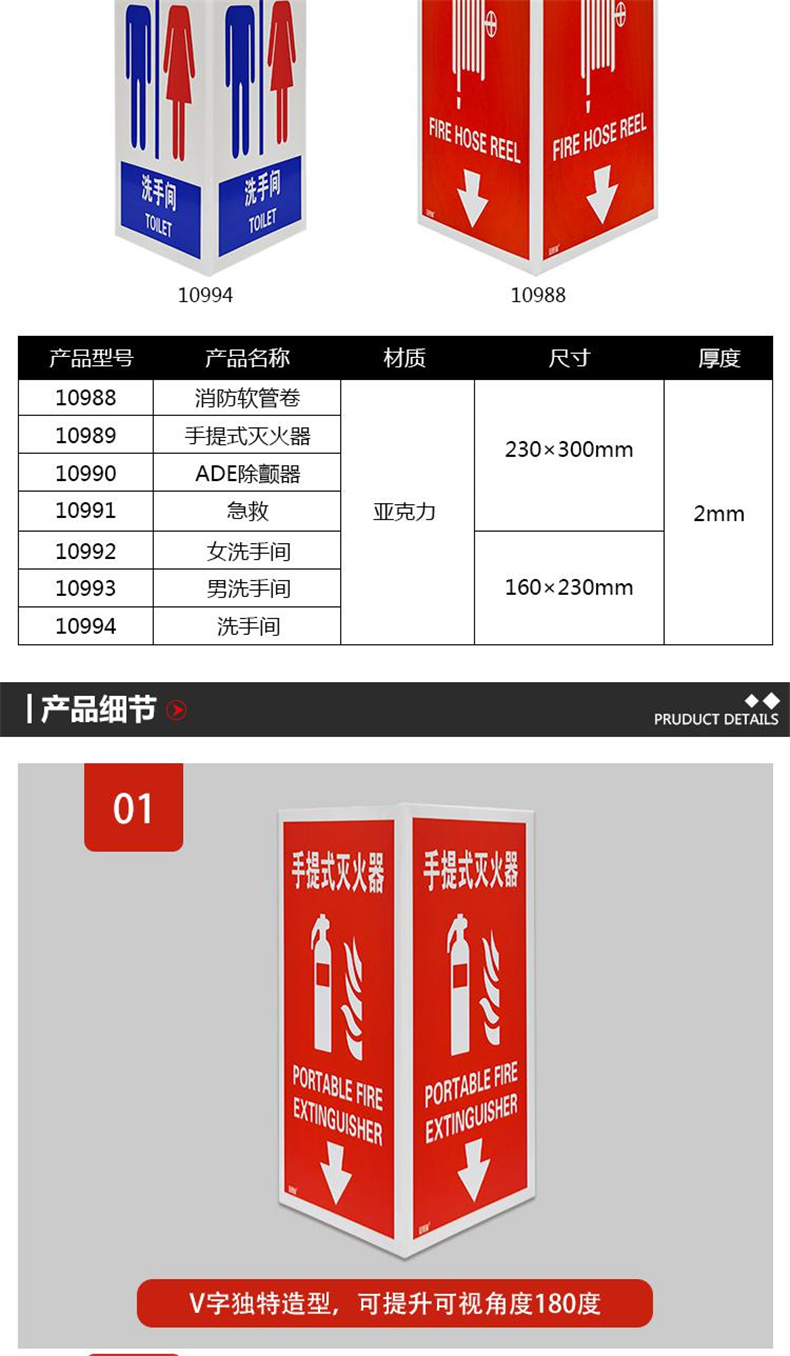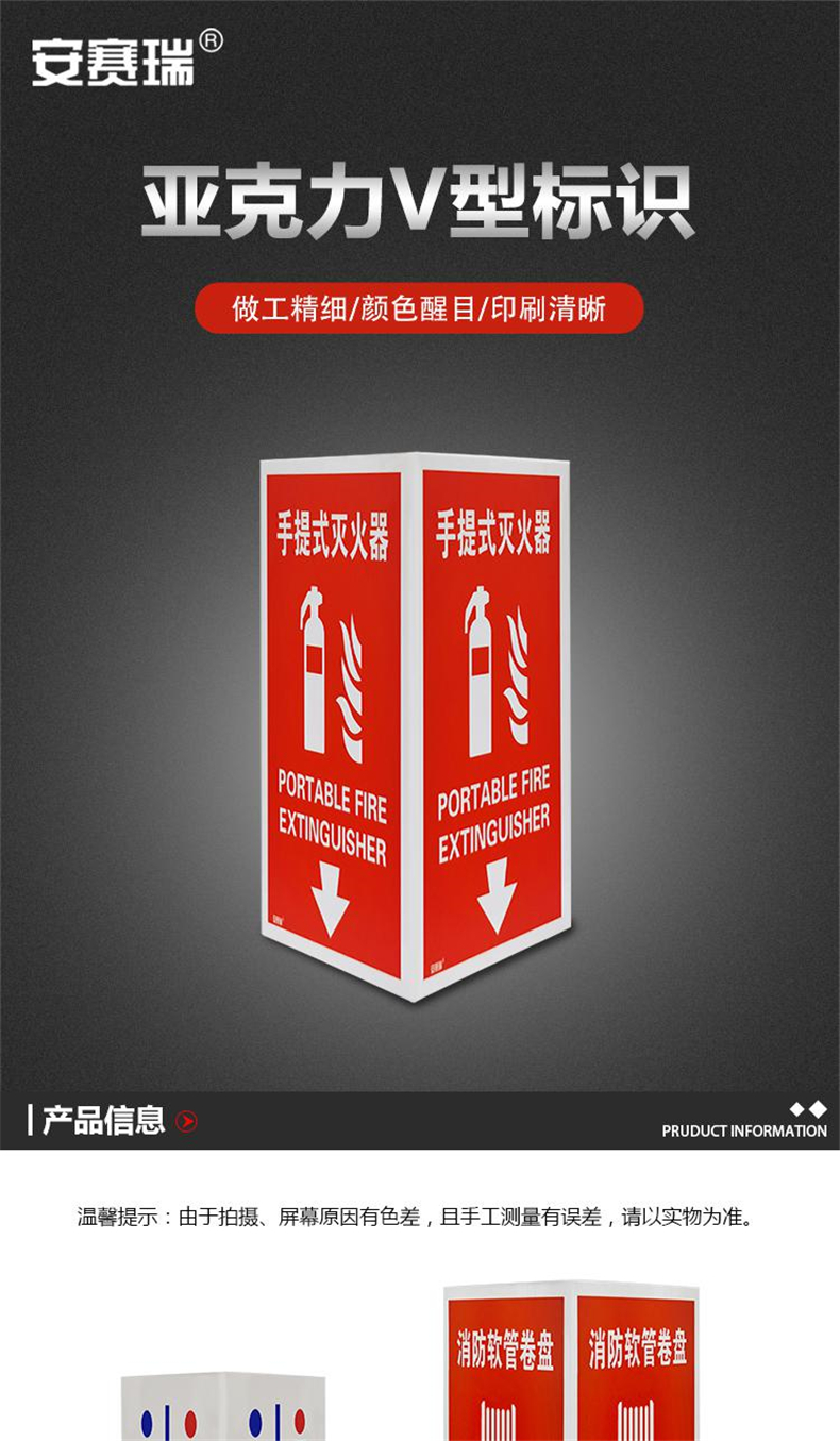 安赛瑞 10989 亚克力V型标识 手提式灭火器 宽23cm长30cm按(张)销售   收藏
