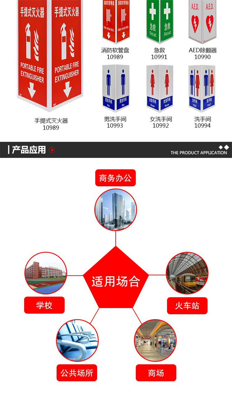 • 安赛瑞 10989 亚克力V型标识 手提式灭火器 宽23cm长30cm按(张)销售