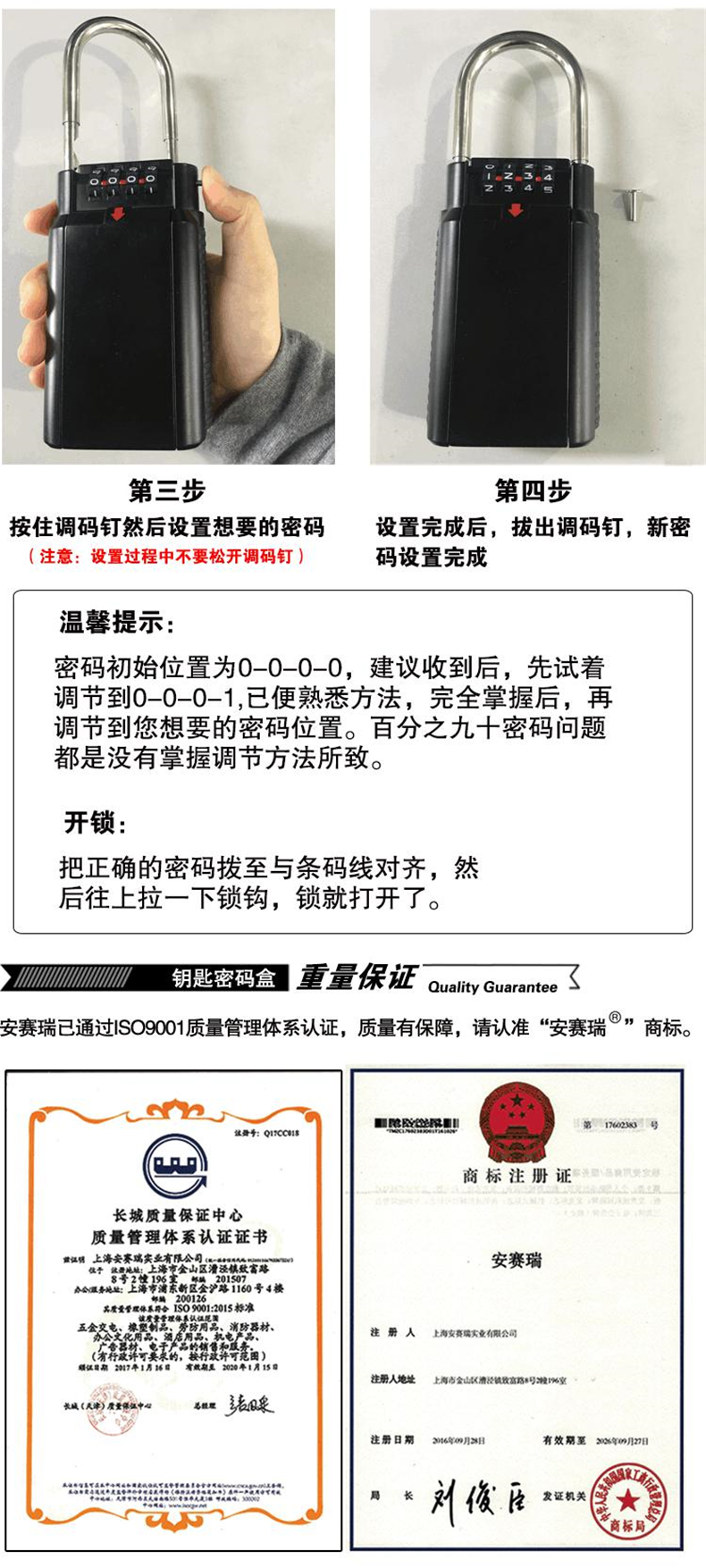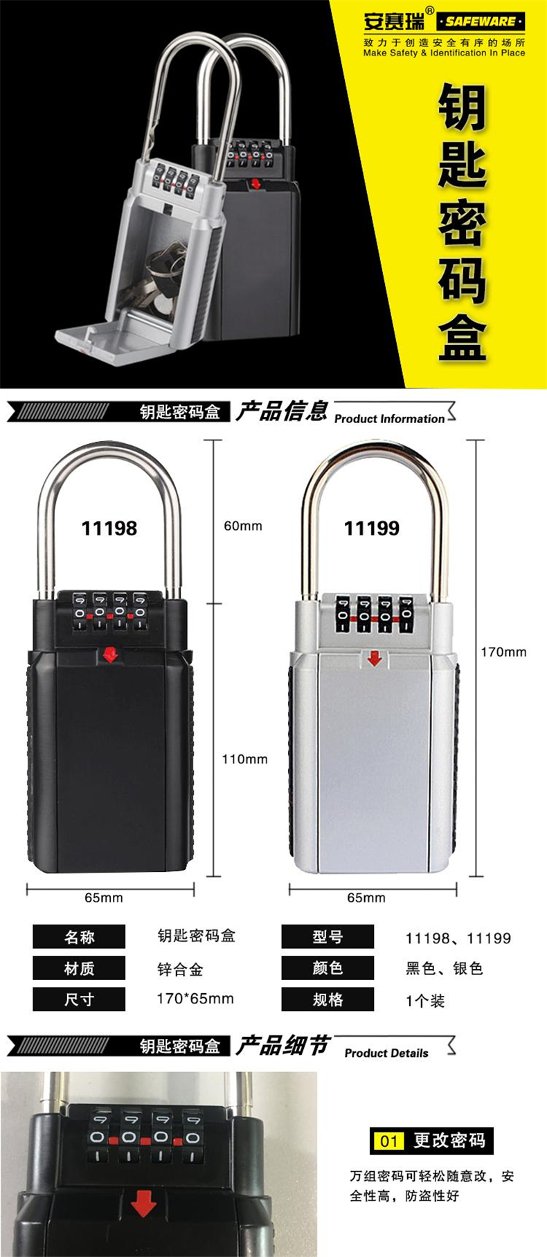 • 安赛瑞 11198 金属钥匙密码盒 (1个装)锌合金 黑色 长170mm宽65mm按(个)销售